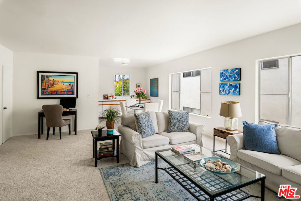 Santa Monica Condominium in Choice Location. Top floor 2 bedroom + 2 bath condo with approx. 1,222 sqft. Airy with an abundance of natural light in an intimate 7-unit condo complex that's newly painted and carpeted. Generously sized open floor plan and Inside laundry hook-up and split A/C installation with HOA approval. There is a community laundry facility in the complex. Sizable bedrooms with ample closet and storage space.. One car parking and extra storage. Located in the Santa Monica School District. Close to Bristol Farms, Whole Foods, Erewhon and tons of shops, restaurants and services. Minutes to the beach, Brentwood, Century City, Beverly Hills and UCLA. In close proximity to the Metro Station