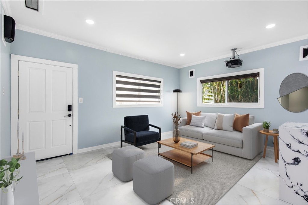 Welcome to this beautifully, completely remodeled condo located in a prime area of Santa Monica. Situated at 1333 14th Street, this eleven-unit building boasts a charming setting on a tree-lined street. The building's well-maintained exterior is complemented by a tranquil water feature and a bamboo garden, adding to its curb appeal. This ground-floor unit, featuring one bedroom and one bathroom, is tucked away behind a secured gate for added privacy and security. As you step inside, you'll be greeted by a bright and open living space, with Wi-Fi controlled lights, and brand-new floors throughout. The living area is equipped with a drop-down screen, projector, surround sound, and built-in speakers, elevating your entertainment experience to the next level. The recently redone kitchen has top-of-the-line LG appliances, marble counter tops, a new ceiling fan, and a custom built-in desk, making it a delightful space for work and for culinary endeavors. The designer bathroom is a standout feature, boasting an LED mirror, a spacious, marble, walk-in shower with a bench, a sleek vanity, and a built-in medicine cabinet for added convenience. The spacious bedroom has new closet doors, built-ins, and a new ceiling fan for comfort. Residents of this condo also enjoy the convenience of two newer community washer & dryers that are free to use. Additionally, there's one parking spot available inside the gated, locked garage, complete with a large private storage area. This beach condo is ideally located within walking distance to Santa Monica's finest restaurants, shops, activities, and coffee shops, ensuring a vibrant and convenient lifestyle. And saving the best for last, your new home is just 14 blocks away from the world-class beaches and the sparkling Pacific Ocean, offering endless opportunities for relaxation and recreation.