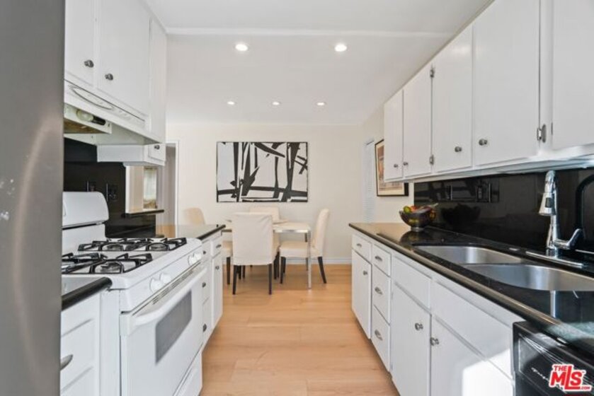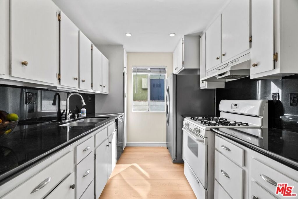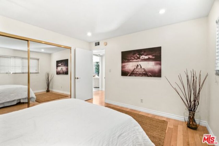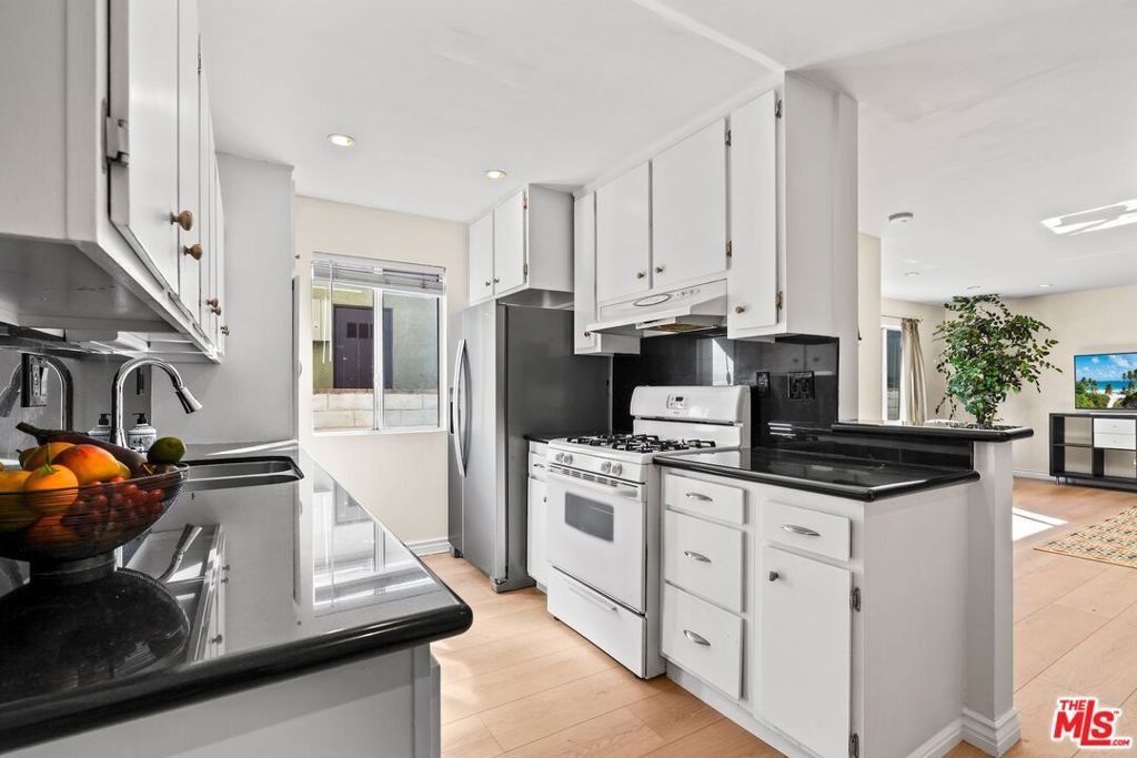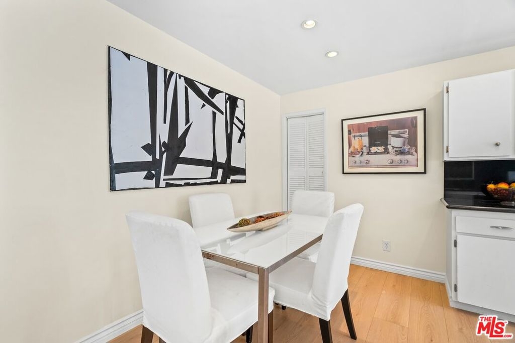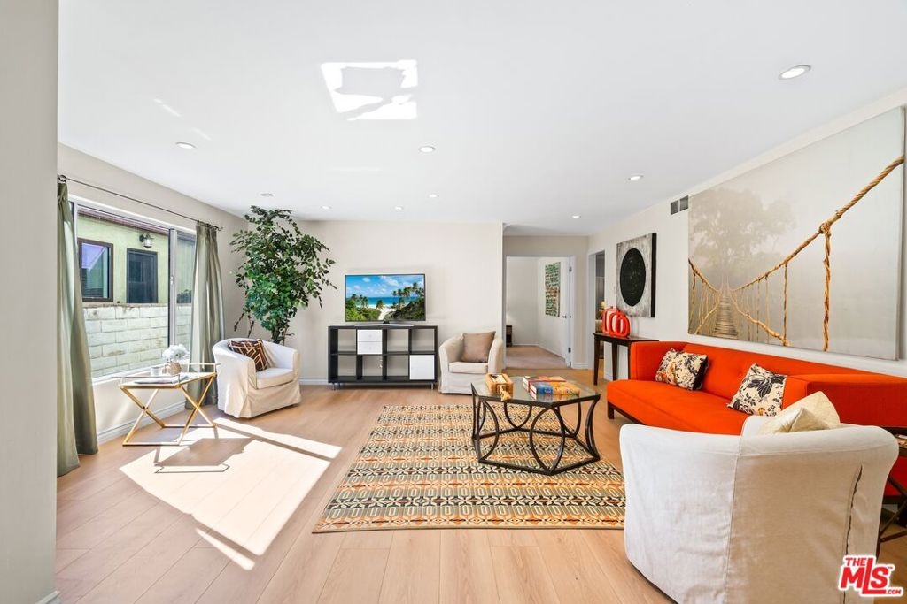 Enjoy expansive living in this well-designed residence featuring an oversized family room that easily functions as a fourth bedroom, office, or media space. Located in an intimate 5-unit complex, it offers a quiet setting with two side-by-side enclosed parking spaces and extra storage. A blend of hardwood and vinyl flooring, recessed lighting, and a spacious, flexible living area create a clean, contemporary feel. The tiled kitchen is appointed with granite countertops and ample cabinetry, while the bathrooms showcase updated tilework and modern finishes. A large utility closet accommodates a full-size laundry area. The primary suite offers room for a desk or sitting area, and the secondary bedrooms support full-scale furnishings. Low HOA dues include water. Situated in the Santa Monica School District, with easy access to shops, restaurants, Bristol Farms, Whole Foods, Trader Joe's, the beach, UCLA, Brentwood, Century City, and Metro stops.