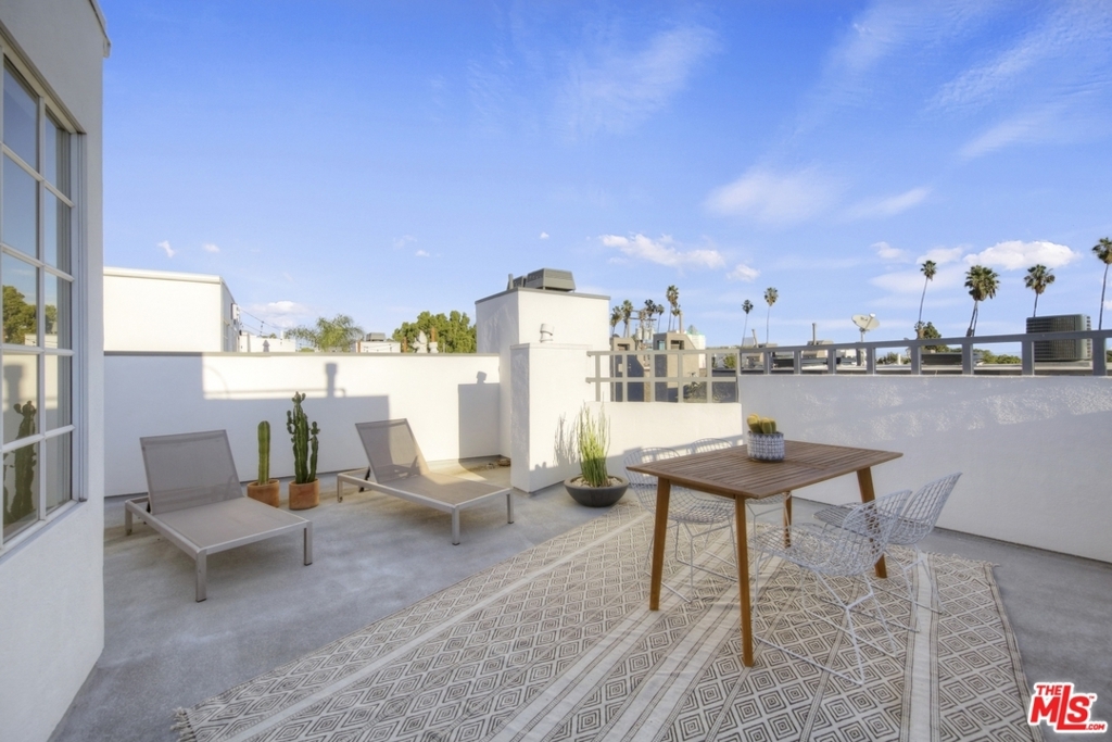Live in as-is or customize this spacious 1,868 sf townhouse with 2 BD+ 2.5 BA+ flex room+ wraparound rooftop deck. The ground level offers an open living/dining room and eat-in kitchen with 2 outdoor spaces, a fireplace and high ceilings. Below is a direct access 2-car private garage and large flex room that could be a perfect office, gym or media room. Upstairs features a generously sized, bright main suite along with another bedroom suite. Additional highlights include: brand new HVAC system, bamboo flooring, and pride-of-ownership secure building. To top it off, a wraparound rooftop deck with views provides opportunities for both sunbathing and star gazing. Conveniently located near markets and eateries on both Wilshire and Santa Monica Blvd.