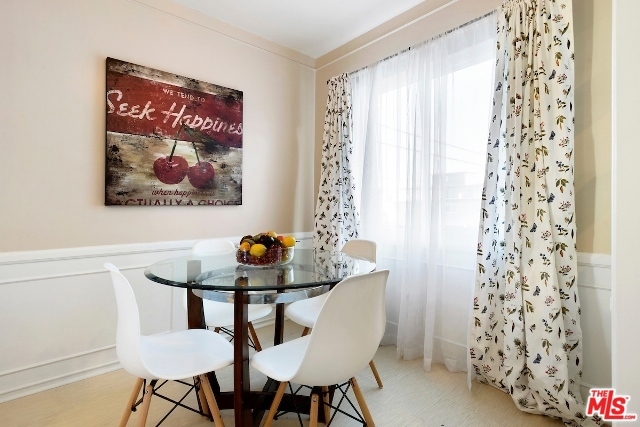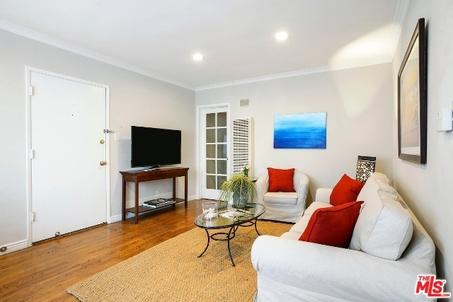 Absolutely Charming Santa Monica Condo! Beautifully light filled top floor unit with only one common wall set in a garden style condo complex.Hardwood floors and double pane windows throughout with crown moldings and recessed lights in living area. Spacious living room with enough room for an office. Kitchen with granite counter tops and greenhouse window. Lovely and sunny dining area, good amount of closet and storage , updated tiled bathroom with laundry, Ceiling fans in bedrooms, one car garage with lots of storage area. Minutes to the beach, dining, shops and Metro stop.