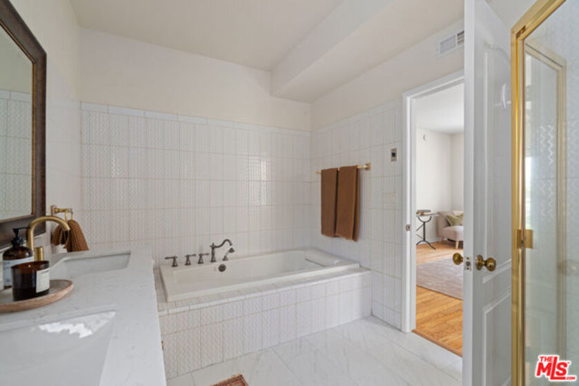 A true unicorn in Santa Monica known for its highly coveted schools and services - over 2,000 square feet, no shared walls, plenty of outdoor space and windows on all four sides, and the vibe of a single-family home. This spacious residence offers open living space designed for flexibility, comfort and room to grow. //Set within an intimate six-unit complex, this condo is one of only two units in the front building, and it spans the entire first floor. Surrounded by windows and views of lush greenery and bright bougainvillea, this home offers exceptional natural light, privacy, and airflow. Step into a welcoming layout all on one level, where high ceilings and dedicated yet open spaces lead you through a classic, warm, and elegant home. //The heart of the home is a large living room that opens seamlessly to the dining area and one of the expansive patios - ideal for effortless indoor-outdoor entertaining. The contemporary kitchen offers plenty of space atop granite counters for the most savvy home chefs, along with all stainless steel appliances and a brand new refrigerator. A flexible bonus room adjacent to the kitchen adds functionality and charm, offering the perfect nook for a popcorn-and-TV lounge, kids' playroom, or a work from home zone. //The generously-sized primary suite leads to an extra-long balcony that overlooks the lush center courtyard. The primary closet is a full walk-in, and the primary bathroom is built for leisure, with dual vanity, dual medicine cabinets, a separate shower and oversized jacuzzi tub. The sizable secondary bedroom has its own en-suite bath and also leads out to the long balcony with courtyard view. The third completely enclosed room offers flexibility and comfort as a third bedroom, guest space, or private office.//Additional highlights include in-unit laundry, central air and heat, and a massive private storage room in the garage below - big enough to accommodate a home gym space or to store all your adventure gear. Parking is a breeze with two side-by-side gated spaces directly beneath the unit in a garage shared with just one neighbor. HOA dues are minimal and include water, trash, insurance, annual termite inspection, regular pest control, and gardener. //Located on a gorgeous tree-lined street, this home places you central to everything - top-rated Santa Monica schools, local parks, grocery stores, and the best of the city's shopping, dining, and cultural offerings. //Whether you're seeking more room to grow or simply a turnkey home in one of LA's most desirable coastal communities, this one checks every box and more.