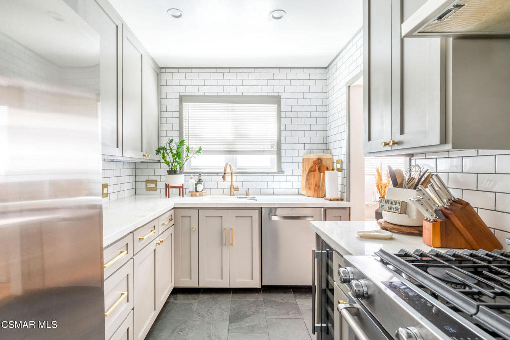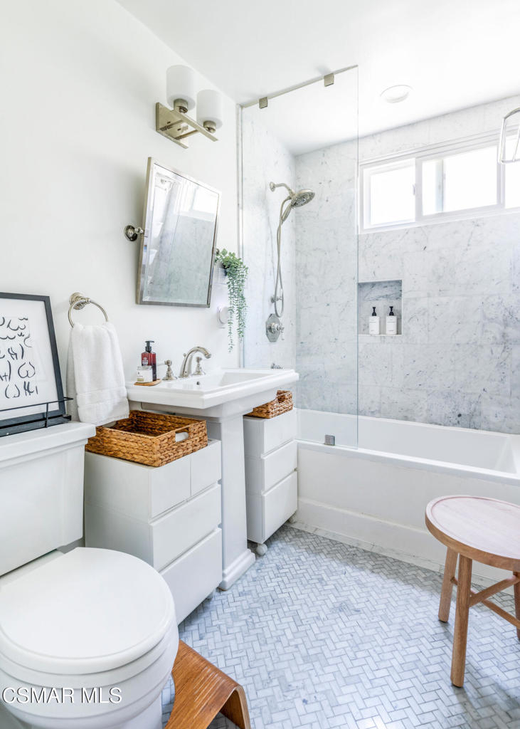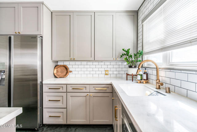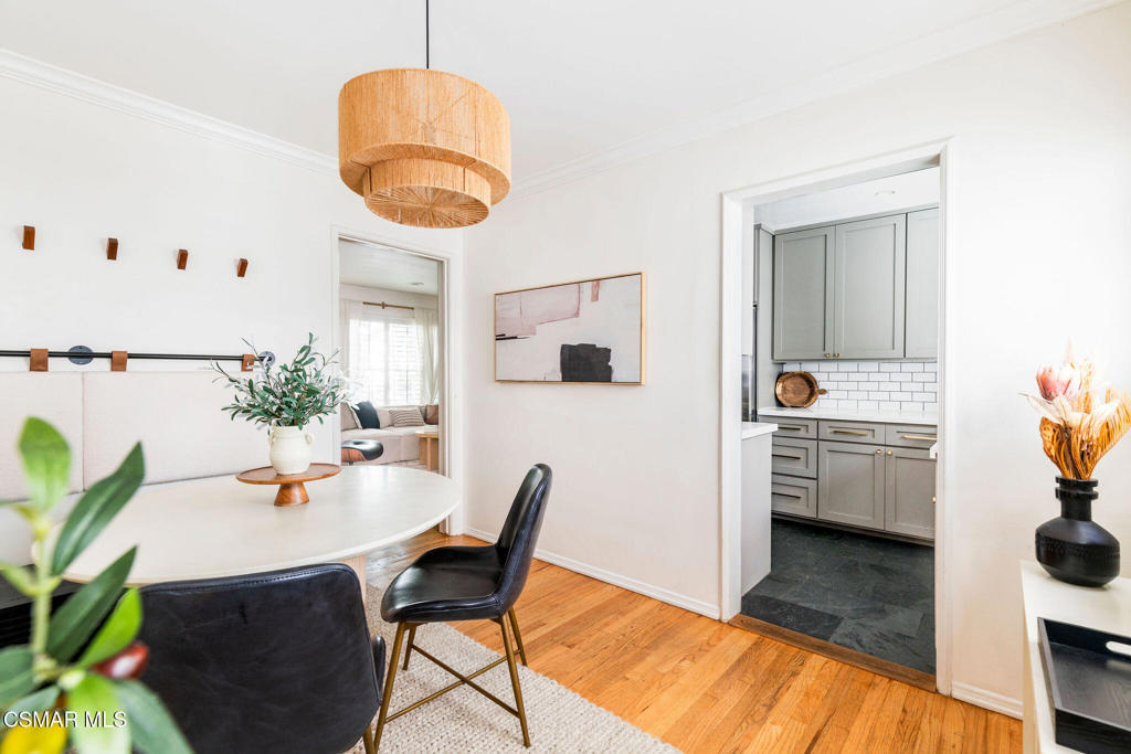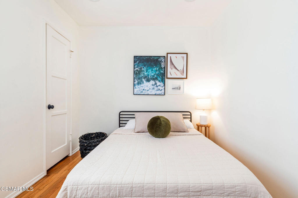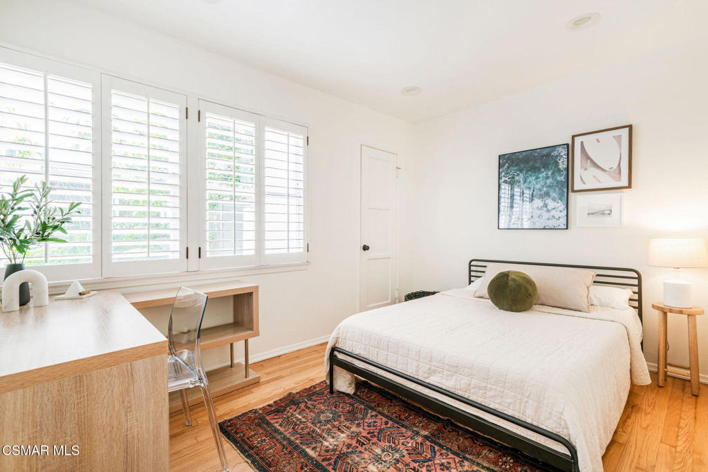 Welcome to this beautifully updated 2-bedroom, 1-bath condo in one of Santa Monica's most sought-after garden-style buildings. Set in a tranquil courtyard, this inviting ground-floor unit offers both seclusion and character. Surrounded by lush landscaping, mature trees, and inviting pathways that lead to serene patios-perfect for relaxing or entertaining guests. Inside, the spacious living room features a wall of windows, rich hardwood floors, and custom built-in bookcases, all bathed in natural light. The freshly painted interior is accented with recessed lighting and plantation shutters throughout. The remodeled kitchen is a showstopper with gleaming marble countertops, designer tile backsplash, top-tier stainless appliances, and a wine fridge - seamlessly opening to a large dining room with direct access to the rear patio area. Both bedrooms are generously sized. The luxurious bathroom includes marble finishes and an oversized soaking tub with shower. Additional highlights include in-unit washer and dryer, shared garage with one parking space and storage, plus a community laundry area and bike rack. Ideally located near shops, grocery stores, restaurants, parks, Santa Monica College, freeways, Third Street Promenade, Brentwood and minutes to the beach. This is a rare and special offering you won't want to miss!