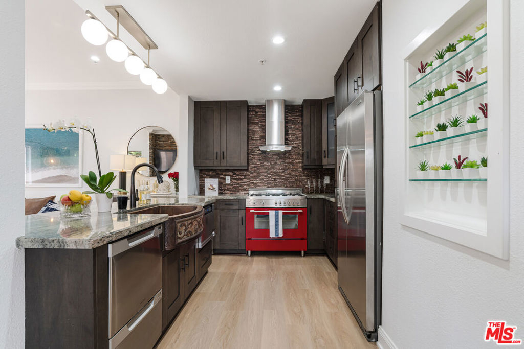 Welcome to FIFTEEN31 MODERN SPANISH | LUXURY | LIFESTYLE sophisticated single-level condo with only one common wall, outdoor space, Low HOA (includes water and HQ insurance), 2 side-by-side covered parking with EV-charger, in-unit laundry, in a quiet & exclusive, gated 9-unit complex in the HEART of Santa Monica. Experience the perfect blend of effortless costal living and urban convenience--5 min bike ride or 10-15min walk to the beach, Trader Joe's, vibrant restaurants, shops, and spas. Improvements made by current owner deliver impeccable style and function, including high-end-window treatments, recessed lighting with matching dimmers, luxury light-fixtures, freshly tiled bathroom floors, new bathroom vanities and sinks, new water heater, fresh paint, and privacy hedges. FIFTEEN31 Suite #1 impresses the most discerning buyer with high-ceilings, sleek stone, hardwood-laminate floors, wood burning & plumbed for gas fireplace. Spacious living area pre-wired for 5.1 surround & HDMI HD inputs. Gourmet open kitchen w/granite tops and custom cabinets. Massive center island w/oversized 100% COPPER farm sink, state of the art WINE fridge, Fisher and Paykel dishwasher. Stainless steel appliances w/ BERTAZZONI range oven, Dacor microwave. Formal dining room surrounded by bay windows, Ultra-High-quality washer/dryer, Central heat/AC w/ Nest Thermostat. Master suite w/ sitting area, custom built-ins in, extra-large closet, master bath w/ walk-in glass shower w/ river rock floor & spa shower panel. Spacious 2nd bedroom-stylish guest suite and serene home office. The 2nd bathroom features a gorgeous custom soaker tub. This Remarkable Hidden Jewel has incredible curb appeal--stunning Contemporary Spanish Architecture secured by a grand, password protected gate. Built in 1989, this property is NOT SUBJECT TO RENT CONTROL like the majority of buildings in Santa Monica built before 1979. Located in coveted Santa Monica school district. Option to purchase furnished for an additional cost.
