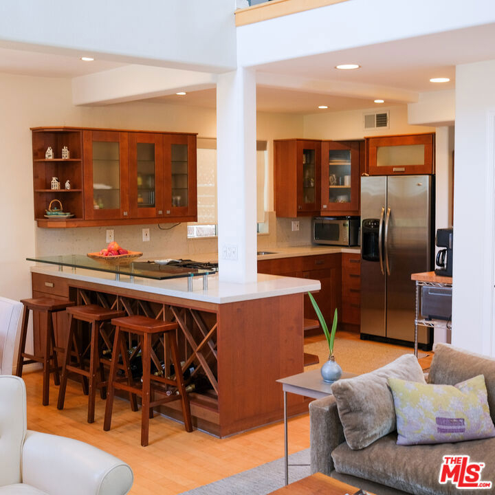 Welcome to this stunning, contemporary townhouse nestled in one of Santa Monica's most desirable boutique buildings, home to just five exclusive residences. Rarely available, this private retreat offers the perfect blend of modern design and comfort in a prime location.Inside, soaring ceilings and rich wood flooring create a light-filled, open atmosphere throughout the main living areas. The thoughtfully designed floor plan features two spacious bedrooms, two and a half baths, a cozy family room, a dedicated office, and a versatile flex spaceideal for today's work-from-home lifestyle or additional entertaining. Both bedrooms open to private balconies, providing peaceful outdoor escapes, while the beautifully updated bathrooms bring a refined, spa-like touch to everyday living. A private, direct-access garage and an oversized storage roomperfect for bikes, fitness equipment, or a home gymadd exceptional convenience and value. This extra space is not included in the listed square footage. Located in a prime Santa Monica neighborhood close to top-rated schools, transit, dining, and shopping, this residence offers the rare opportunity to enjoy luxury, privacy, and walkable city living in one elegant package. Don't miss this rare opportunity to own a private townhouse in one of Santa Monica's best neighborhoods.