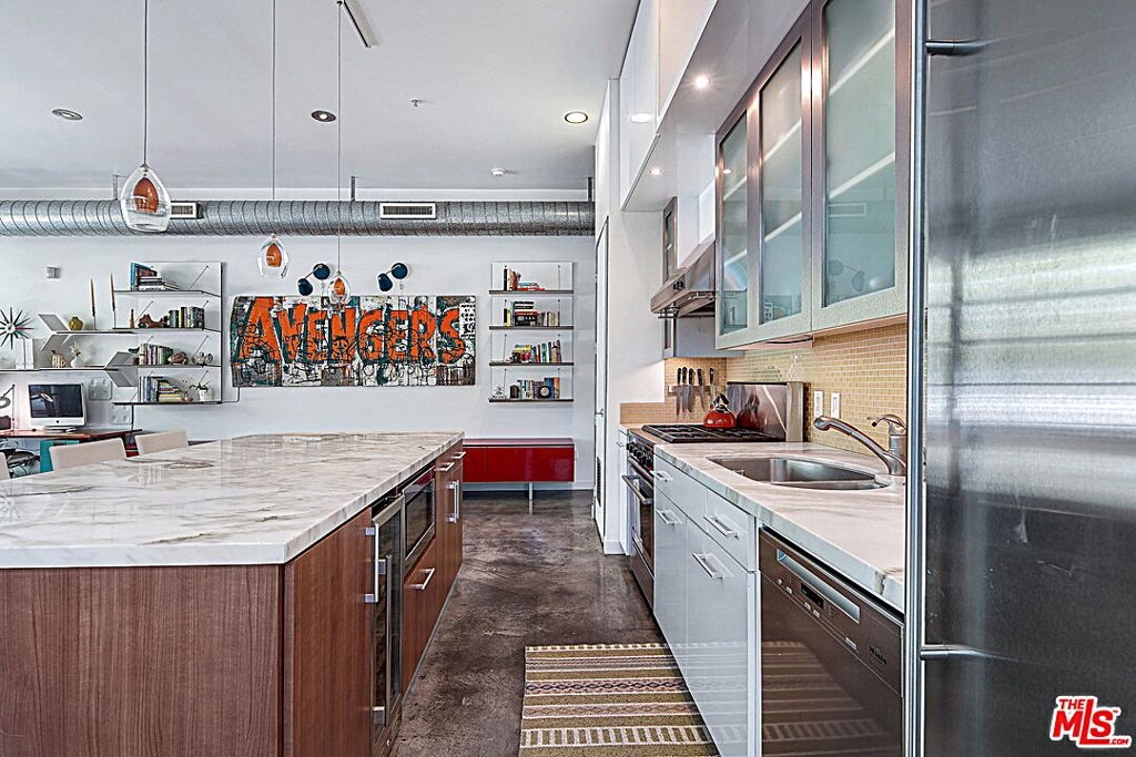 Just minutes from the beach in Santa Monica's Mid-City, this Pugh + Scarpa designed industrial-style Live/Work loft features an open floor plan with polished concrete floors, 11' ceilings and floor-to-ceiling windows that soak the space with natural light. The exceptional kitchen is upgraded with designer finishes, including high-end stainless steel appliances, large center island, marble countertops and custom maple cabinetry. The primary suite features two spacious closets and roll-up garage door that opens up to a central courtyard, while the ensuite bath offers a custom-tiled double shower and limestone clad dual vanity. Across the loft is an additional bedroom or work space with a murphy bed with built-in storage and access to the full guest bathroom. The home's great room opens to a generous front patio with plenty of space to hang your hammock, add a grill and dine or lounge al fresco. Zoned for Live/Work, the loft comes with two side-by-side parking spaces in a secured underground garage with guest and permit parking also available. Located just off Colorado Ave and near the Expo Line, all the best in Westside dining, amenities and the beach are within reach.