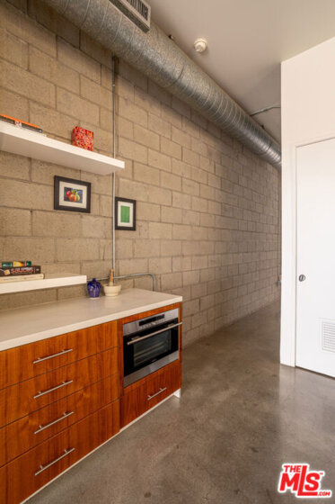Step into this stunning Santa Monica residence where industrial design meets luxurious finishes in a truly unique space. From the moment you enter, you're greeted by industrial elegance, polished concrete floors, and expansive floor-to-ceiling windows that bring the home natural light. High ceilings and thoughtful pops of color and pattern enhance the open floor plan, creating an inviting and visually striking ambiance. Channel your inner chef in the updated gourmet eat-in kitchen, featuring premium stainless steel appliances, a center island, and ample space to create and entertain. The living area is centered around a modern fireplace, setting the tone for cozy evenings or lively gatherings. Step outside to your private oasis: the building's only covered patio, a 300 sq ft retreat surrounded by a brick wall and lush greenery ideal for relaxing or entertaining under the stars. The spacious primary suite offers a spa-like ensuite bath complete with a soaking tub, dual sinks, and a luxurious walk-in shower. This Santa Monica condo included Central air, 2 underground secured parking spots, lockable on-site storage and your own 220V charging station. Perfectly located with quick access to the Metro Expo Line, Memorial Park and an array of shops and restaurants, this home offers a lifestyle of convenience, comfort, and sophisticated urban living.