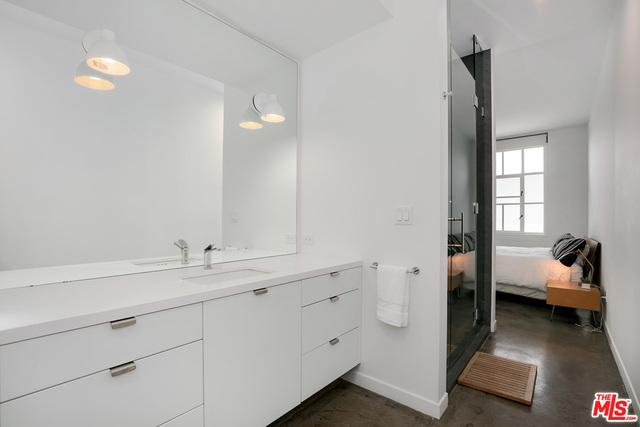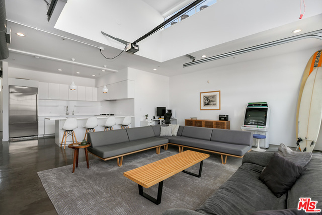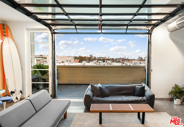 Remarkable opportunity to own a top floor south facing unit in a building designed by Pugh & Scarpa. Major renovations in 2015 include a newly designed kitchen by Steve Carlson (ROWLA Studios) with custom cabinets, high end fixtures, Silestone counter tops and back splash, Miele stove top, oven, and hidden dishwasher. Enjoy a fresh breeze of air and views when you open your large garage door in the living area which also provides and abundance of natural light! The master bedroom is spacious and also provides lots of natural lighting. Master bathroom has been designed with matching custom cabinets, ample shower with Heath tiles, high end Fantini fixtures, and a new Duravit toilet. Located on a quiet street with easy access to the expo line, downtown Santa Monica, coffee shops and restaurants within a short distance.