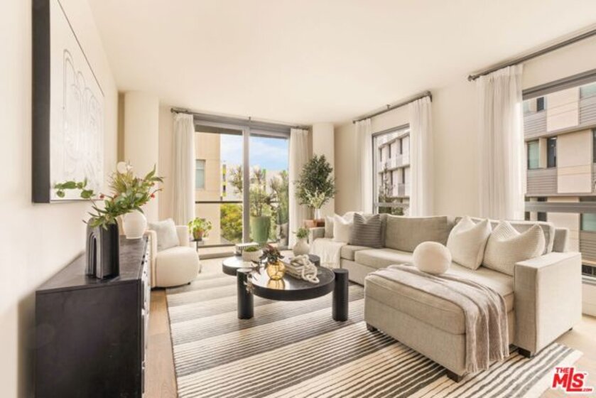Welcome to this beautifully designed 2-bedroom 2-bathroom corner unit in the prestigious full-service building 'The Seychelle'. Just one block from the beach, this home offers luxury coastal living with top-tier amenities and an unbeatable location. Designed by Clodagh Design International, the open layout features wide-plank wood floors, sleek cabinetry and an abundance of natural light. The kitchen includes Thermador stainless steel appliances, a marble island that opens to the dining and living areas as well as a private patio. The ideal split-bedroom floor plan provides upmost privacy, with a spacious primary suite that includes generous closets and a spa-like bath with dual marble vanities and large walk-in shower. Extras include in-unit laundry, two gated spacious side-by-side parking spots and plenty of guest parking. Enjoy resort-style amenities like a rooftop saltwater pool and hot tub with breathtaking ocean views, BBQ areas, a tranquil courtyard, fitness center with yoga/pilates studio and 24-hour concierge and doorman. Coastal luxury, comfort and convenience. This is your opportunity to own one of the most sought-after 2-bedroom floor plans in the prestigious building, The Seychelles.