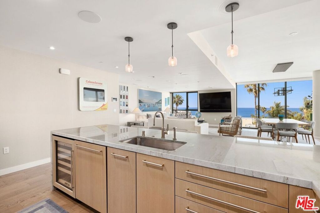 Experience five-star oceanfront living at The Seychelle, an iconic residential tower on Ocean Avenue in Santa Monica. This expansive corner residence originally configured as a three-bedroom, four-bath unit and masterfully reconfigured to maximize sweeping ocean and white-water views offers two bedrooms, two-and-a-half baths, and interiors conceived by renowned celebrity designer David Phoenix, whose signature blend of sophistication and warmth is felt in every detail. The open-plan living, dining, and kitchen areas capture some of the widest, most expansive sweeping ocean views in the building, framed by large windows that make the Pacific a constant, breathtaking presence, while the chef's kitchen features top-of-the-line Thermador appliances, a waterfall-edge island, and a wine fridge. The primary suite is a true sanctuary, complete with a massive closet, an expansive private oceanview deck, and an oversized spa-like bath with dual vanities, separate shower, and soaking tub. A generous second ensuite bedroom with a large closet completes the private quarters. A fully integrated Savant A/V system with ceiling and wall speakers throughout adds a seamless layer of sophistication. The building delivers a premier lifestyle at every turn 24-hour concierge, a private rooftop lounge with pool and spa offering jetliner ocean and city views, state-of-the-art fitness center with Pilates studio, pet spa, business center, bike storage, and an enormous private storage room, with two gated side-by-side parking spaces included. Steps from the beach, Main Street, Abbot Kinney, Downtown Santa Monica, and easy access to the 10 freeway this is coastal California living at its most refined. Next owner has the ability to put unit back to a 3 bedroom 3.5 bath if desired.