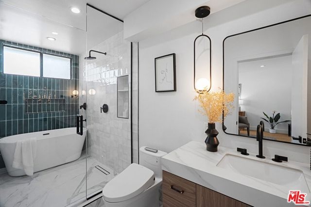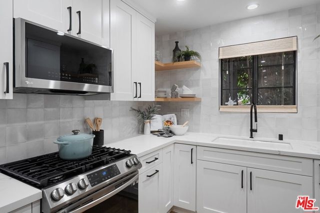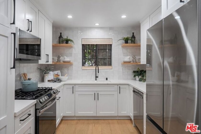 Nestled on a quiet, tree-lined street in the heart of Santa Monica, this beautifully reimagined 2-bedroom, 2.5-bath townhouse blends modern sophistication with timeless coastal charm. Located in an intimate 6-unit building with secure gated, side-by-side parking, this turnkey residence offers effortless living just minutes from the beach. The main level welcomes you with an open-concept layout that seamlessly connects the living and dining areas to a stylish, contemporary kitchen featuring stainless steel appliances, designer tile backsplash, and warm, daylight-inspired lighting. A chic powder room adds functionality and flair, perfect for guests and everyday living. Upstairs, two spacious bedrooms each feature their own thoughtfully designed ensuite bathrooms, while a skylight above the hallway bathes the upper floor in natural light, creating an airy, sun-kissed ambiance. The unit also features a spacious patio with newly landscaped ficus to give you maximum privacy. The convenience of in-unit laundry completes this thoughtfully updated home. Parking is in a secure underground gated garage with two spaces side by side. With nothing left to do but move in and start enjoying the Santa Monica lifestyle, 1807 10th Street is a rare opportunity to own a low-maintenance, design-forward home in one of L.A.'s most coveted coastal communities. Whether it's morning coffee at Layla Bagels, sunset sips at Bodega Wine Bar, or weekend rides along the oceanfront, your perfect Westside retreat awaits.