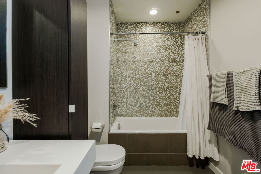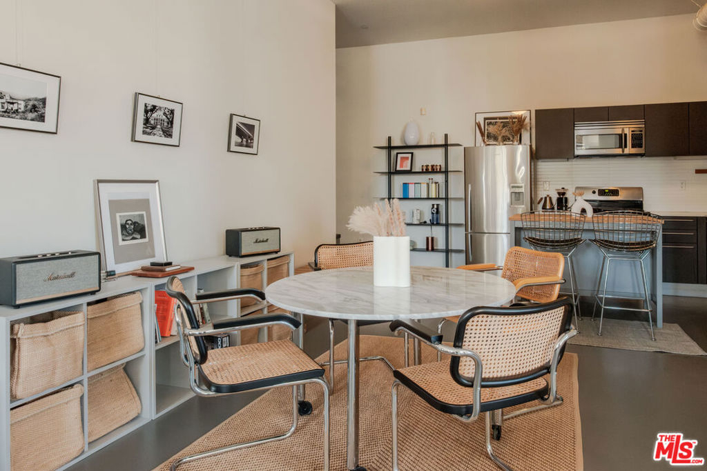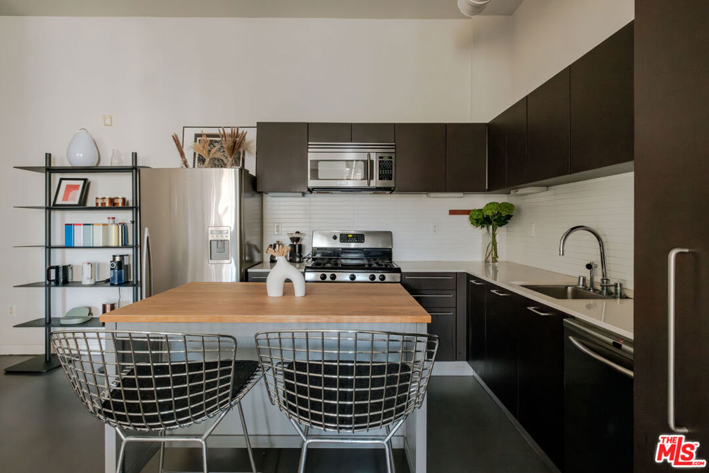 Welcome to this sun-drenched, industrial-chic corner unit in the sought-after Broadway Lofts complex. This unique loft-style studio walk-up blends urban edge with beachside ease, featuring walls of windows that flood the space with natural light throughout the day. Unit 109 is south-facing, ideally located on the desirable 19th Street side of the building, and boasts nearly 200 square feet more than other studios in the complex. Enter through one of two private entrances into a spacious, open-concept layout with loft-inspired detailing, soaring ceilings, and concrete floors. The sleek Italian kitchen, outfitted with Boffi cabinetry and quartz countertops, flows effortlessly into the expansive living and sleeping areas. A gated private patio offers the perfect retreat for your morning coffee or an evening unwind. The well-proportioned sleeping area features a walk-in closet, while the modern bathroom is equipped with dual sinks and premium finishes. Additional highlights include in-unit laundry, central air, and secure, side-by-side parking for two vehicles with room for additional storage. Enjoy access to a rooftop viewing deck with panoramic city and mountain views, and the everyday convenience of the on-site Cafe Lovi, just steps from your front door. Located just blocks from Memorial Park, Santa Monica Brew Works, Ralphs, Co-Op, Bergamot Station and a variety of shops and restaurants, this property exemplifies Santa Monica living at its best - walkable, stylish, and private.