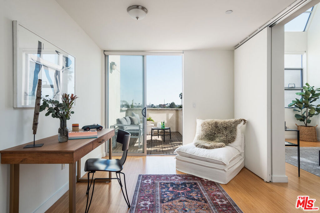 Modern and bright loft-style condo with EV charger. This top-floor, south-facing unit with soaring 20ft high ceilings allows for abundant light throughout the day. Located on the quieter side of the building creates a work-from-home environment free of traffic noise. Then when it's time to step away from the desk, you can soak up the sun and feel the ocean breeze from one of the two private balconies. Enjoy modern conveniences such as central AC/heat, in-unit washer/dryer, and security system with key fob access. When you need to step out, the open design of the building allows for fresh air and sunlight throughout the common areas. The underground secured garage has two side-by-side parking spaces with a private EV charger and room for additional storage. Broadway has dedicated bike lanes to the Promenade and the Pier, ideal for enjoying beach living while leaving the car at home. The unit is conveniently located just blocks from Whole Foods, Trader Joe's, Co-Op Market, Tartine, Santa Monica Brew Works, Water Garden complex, parks, gyms, and the Expo-line. Low HOA fees include earthquake insurance.
