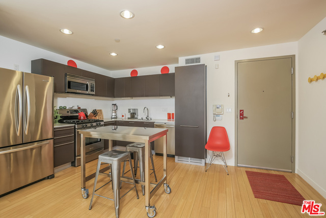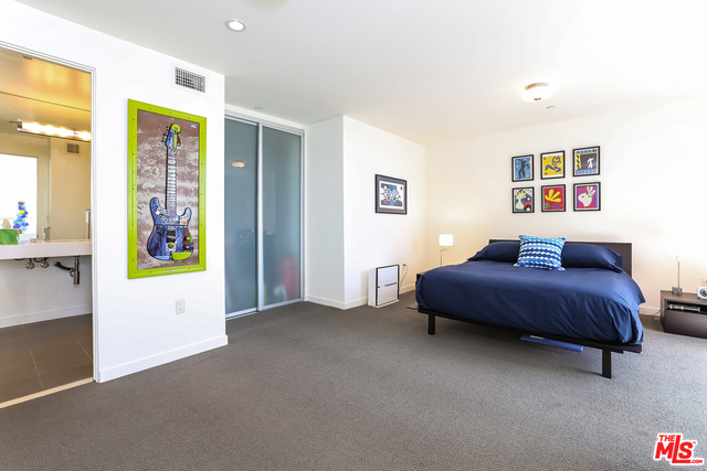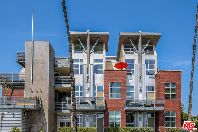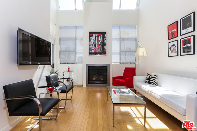 Modern, light-filled, top-floor loft with 19-foot ceilings and soaring skylight windows. Located in heart of SM's high-tech, medical, entertainment corridor. Unit features Ocean View balcony, high-end Boffi kitchen cabinets with Caesarstone countertops, stainless-steel appliances, custom-designed bathroom sinks/cabinets. Custom electric blinds, professional built-in closets, security system, video intercom system, key fob entry to building, DIRECTV-ready and cable prewired. Den can be converted to second bedroom. Bonus side-by-side parking next to elevator. Bosch W/D in unit. Design Within Reach furnishings also available for purchase.