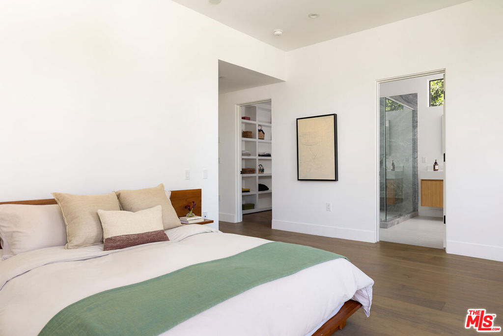Located in the heart of Santa Monica, this modern multi-level townhouse offers 4 bedrooms and 4.5 bathrooms, blending refined design with effortless livability. Flooded with natural light through floor-to-ceiling windows and sliding glass doors, the open layout creates an airy sense of volume throughout. The main level centers around a spacious living room that connects seamlessly to the chef's kitchen, where a custom quartzite and oak island with integrated dining table becomes the natural gathering spot. Thoughtful details--open shelving, a built-in bar, and a beverage fridge--enhance both form and function. Glass doors open to a private patio ideal for al fresco dining or evenings by the fire pit, extending the living space outdoors. Upstairs, three en-suite bedrooms provide comfort and privacy. The primary suite impresses with soaring ceilings, dual walk-in closets, and a serene bathroom featuring Zanger marble, dual vanities, and a freestanding soaking tub. A rooftop deck crowns the home, offering tremendous views and a perfect setting for sunset entertaining. The lower level includes a flexible bonus space, ideal as an office, den, or guest suite, along with direct access to the attached garage. With solar panels for energy efficiency and a central location near Whole Foods, the Santa Monica Farmers Market, top-rated schools, and the beach, this residence delivers the best of coastal living--modern, functional, and distinctly Californian.