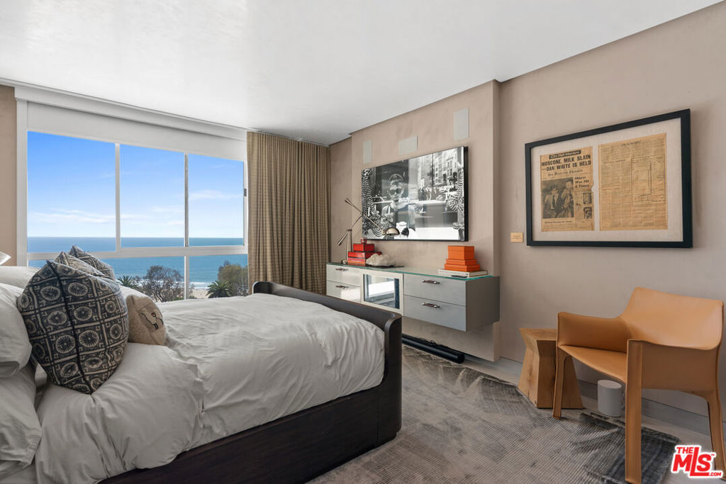 WOW DESIGNER PERFECTION! Step into what may be the best one-bedroom residence in the iconic Ocean Towers, perfectly positioned in the coveted "sweet spot" of the building for exceptional views. From your floor-to-ceiling windows and sliding glass door, take in a stunning panorama overlooking the Jonathan Beach Club, Ocean Front Walk, palm-lined Ocean Ave, and the sparkling Pacific beyond, all while enjoying the constant, refreshing ocean breeze.Every inch has been meticulously upgraded with curated, high-end finishes: Apparatus Studio custom lighting, Waterworks faucet, Holly Hunt suede wallcovering in the bedroom, and Holly Hunt silk grasscloth in the living room. Venetian plaster ceilings, leather-wrapped bedroom hardware, and new Lutron light switches add refined detail, while the Washlet Toto toilet and electronic window shades bring modern convenience and smart-home automation throughout.Ocean Towers is widely regarded as the premier doorman building in Santa Monica, offering a true five-star lifestyle with 24-hour concierge and security, valet parking, pool, spa, gym, and more, all just steps from the sand, shops, and Santa Monica's vibrant dining scene. **RARE OPPORTUNITY TO PURCHASE NEIGHBORING UNIT TO CREATE A 2450+ SQ FT UNIT**