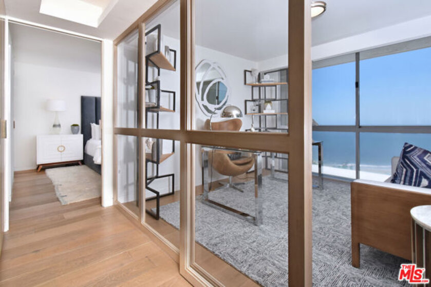 Incredible Malibu and Queen necklace views await you in this completely turn key 2 bedroom, 2 bathroom unit at Ocean Towers. As you enter the unit, you will be mesmerized by the head on ocean views, but the details in this unit are what make it even more special! No expense was spared in a complete renovation, including beautiful wide plank hard wood floors, Jason Koharik light fixtures, and automated black out shades. The kitchen has all top of the line Gaggenau appliances, a wine fridge and marble countertops throughout. Both bathrooms include Waterworks showers and fixtures, spectacular floor to ceiling marble and radiant heated flooring. Ocean Towers is located in the heart of Santa Monica, and is a full service building, with a 24 hour concierge and tons of amenities, such as a Pool & Spa, Sun Deck, Fitness Center, Library, Clubhouse, Conference Center and Valet Parking. ***Photos were taken when the unit was staged. Owner has since moved back into the unit after being displaced from the Palisades Fire and the unit is no longer staged.***
