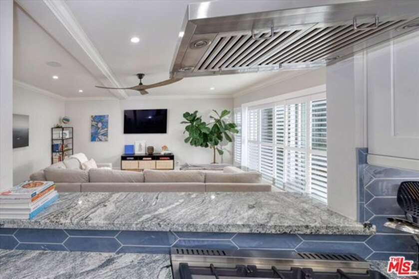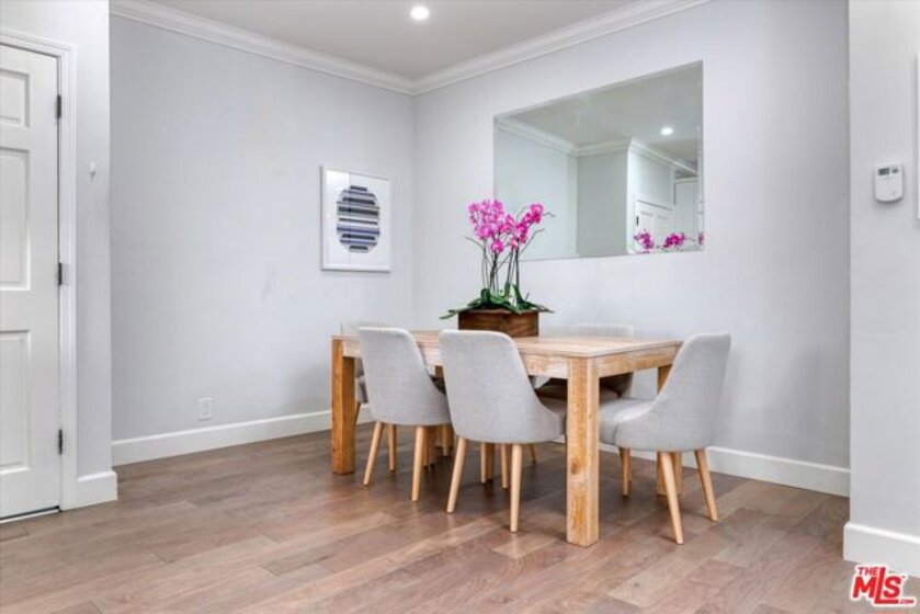 Beautifully renovated top floor 2Bed/2Bath in a lush garden-style complex just south of Montana Ave. This light filled home features tall ceilings, an open concept floor plan, and peaceful treetop views. The chef's kitchen is outfitted with Bertazzoni appliances, custom cabinetry, stone countertops, and Italian tile backsplash. The spacious primary suite includes a stylish en suite bath, barn doors, and California Closets. Community amenities include gated entry, laundry room, refurbished pool, gym/rec room, and bike storage. Unbeatable location just minutes to the beach, shopping, dining, and coffee on Montana Ave. Located in the Franklin Elementary School District.