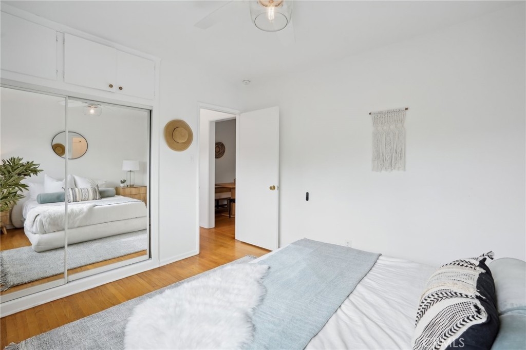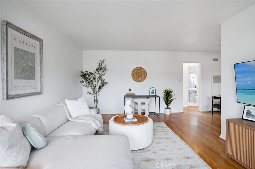 Welcome to your new sanctuary in the vibrant Sunset Park neighborhood! This beautifully updated upper-level condo boasts a perfect blend of classic charm and modern convenience. Freshly painted and featuring original hardwood floors, this home exudes warmth and character. Step inside to discover a spacious living room filled with natural light, thanks to large windows that overlook a stunning garden courtyard—perfect for enjoying your morning coffee or unwinding after a long day. The remodeled kitchen is a chef’s dream, showcasing ample cabinet space and sleek stainless steel appliances, making meal prep a breeze. The dining room offers an inviting space for entertaining friends and family, while the updated full bathroom provides a serene retreat. The good-sized bedroom features generous closet space, ensuring that you have room for all your essentials. This condo is equipped with updated dual-pane windows throughout, enhancing energy efficiency and tranquility. With a low HOA fee that includes earthquake insurance, secure building access, and private parking, you can enjoy peace of mind in this well-maintained complex. Located just moments from the best shopping, dining, and beaches Santa Monica has to offer, this condo is a rare find. Don’t miss your chance to experience coastal living at its finest! Schedule a showing today!