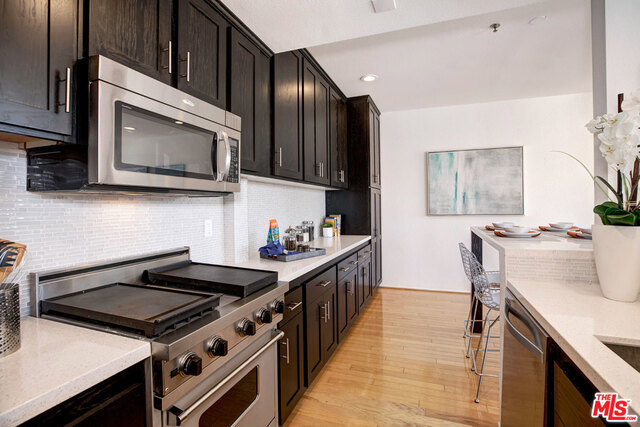 Stunning remodeled condo located only one block from scenic Ocean Avenue and all of the wonderful things Santa Monica living has to offer. Gorgeous kitchen with stainless steal appliances including Viking range, farmhouse sink, granite counter tops and storage galore. The open bright floor plan offers great space for entertaining or relaxing and enjoying the ocean breeze on your secluded patio area, complete with sunset vistas. Two nice sized bedrooms + two remodeled baths complete the floor plan. Features also include inside laundry + secured parking. A great place to call home!