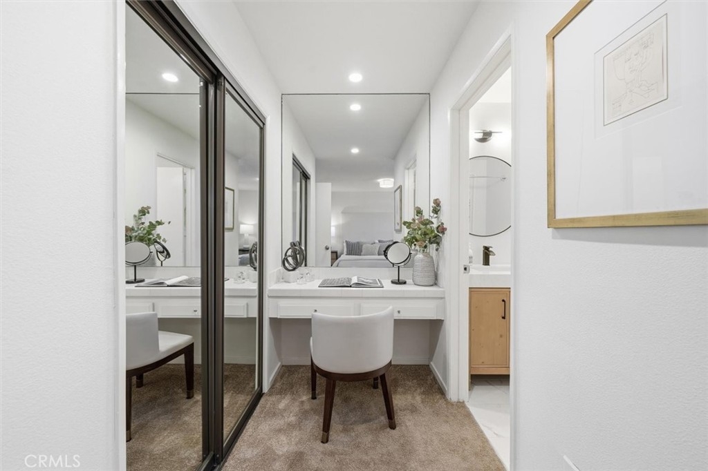 Nestled north of Montana Avenue and just above San Vicente Boulevard, this northeast-facing 2-bedroom, 2-bath condo offers a rare opportunity to own in one of Santa Monica’s most sought-after neighborhoods. Unit 202 is thoughtfully refreshed throughout, the home features updated electrical, brand-new lighting in every room, remodeled bathrooms, a fully reinforced and compliant private patio, and fresh paint. The dining area flows seamlessly into a spacious living room with a cozy fireplace and access to a private patio overlooking the lush tree tops that line 7th Street. With its northeast exposure, the living room is bathed in beautiful morning light—perfect for coffee by the window and cozy evenings by the fire. Just off the dining area, a stylish wet bar with seating for two adds the perfect touch for entertaining. The galley kitchen, while in its original layout, includes a breakfast nook, freshly painted solid wood cabinets, tile countertops, and new lighting—offering great potential for a custom redesign and the opportunity to truly make it your own. Both bedrooms are generously sized with new plush carpet and ample closet space. The hall bath and primary suite have been updated with new flooring, vanities, and designer lighting. HOA fees include water, trash, and earthquake insurance. Building amenities feature a gym, billiards and recreation rooms, a sauna, and community laundry on each level. Two tandem parking spaces and a storage locker are located in the gated garage. Being around the corner from the Santa Monica Stairs on Adelaide, a half mile to the beach, and just a few blocks from Montana Avenue’s boutiques and cafés, this location captures the essence of quintessential SoCal living—with endless ways to stay active and sunsets that never get old. Don’t miss this rare opportunity to own north of Montana for under $1M!