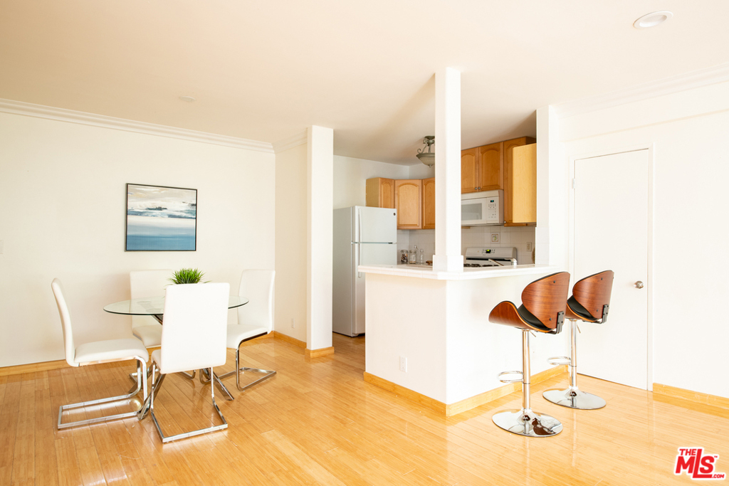 Perfect opportunity to create home and play in Santa Monica's most sought after beach location "Ocean Avenue" This bright one bed, one bath condo offers a large open living dinning area, adjoining the ample kitchen with dine at bar to enjoy more casual dinning. Ocean breezes fill this bright & spacious unit w/bamboo wood floors in the main areas with coral marble flooring in the bathroom and hallway. The bedroom is spacious and airy, offering plenty of storage space in the three large closets. Mature foliage makes for a private, serene, and quiet setting along with no adjoining walls. The building has a laundry room located at the entry of the building w/1 parking spot available for owner, in addition 2 resident/ guest parking passes available for purchase at the beach parking lot. Pet friendly HOA. Close to everything: Beach, boardwalk, Main Street designer eateries and shops, Sunday's Farmers Market, and Famed Santa Monica Pier. Come put your toes in the sand and enjoy beach living!
