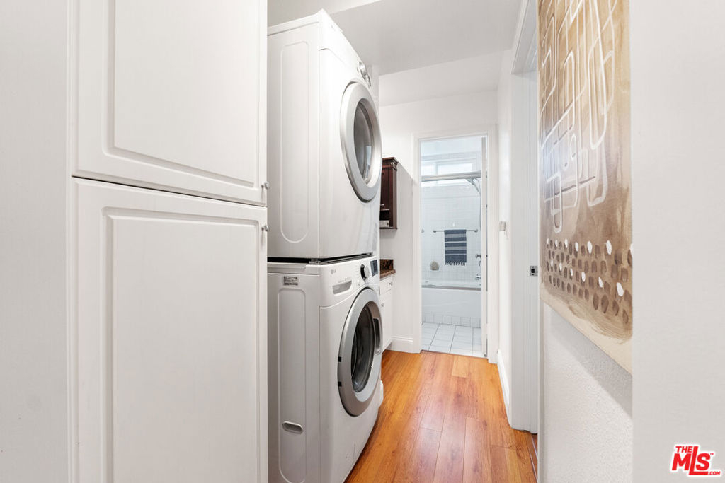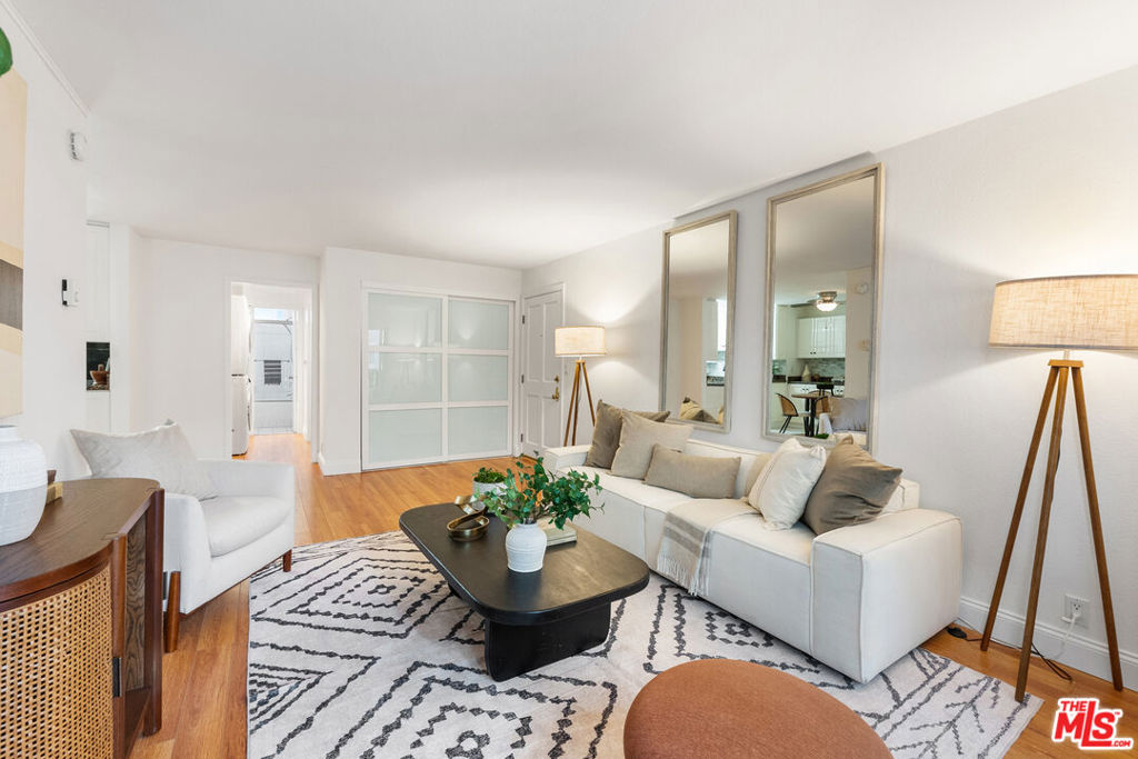 This spacious 2-bedroom, 1.5-bathroom single-level condo is located in an elevator building in the heart of Midtown Santa Monica. Just steps away from trendy shops, Starbucks, Whole Foods, and the Expo Line, it's also a short stroll to the iconic Third Street Promenade and world-renowned Santa Monica beaches. Inside, you'll find an inviting living space featuring beautiful hardwood floors, sleek stainless steel appliances, and freshly painted interiors. The thoughtful floor plan places the bedrooms on opposite sides of the living and dining areas, providing maximum privacy. Enjoy your own exclusive balcony, ideal for grilling or unwinding. Additional amenities include in-unit laundry, secure 2-car parking in a gated street-level garage, and earthquake insurance. This move-in ready condo offers both comfort and convenience in a prime location. Don't miss out on this incredible opportunity!