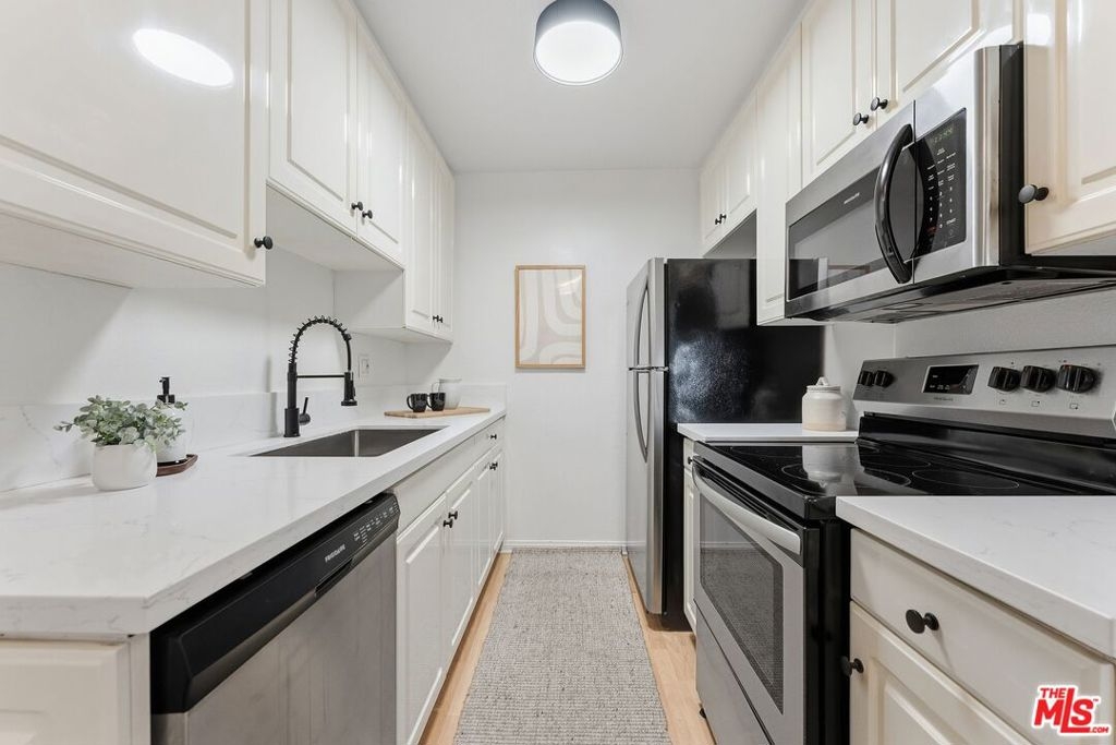 Perched in a prime Santa Monica location, this top-floor corner condo is the epitome of modern convenience and coastal charm. Boasting two bedrooms thoughtfully placed on opposite sides for added privacy, this home offers a smart layout complemented by stylish updates. Step into the spacious living area, where sleek laminate floors flow seamlessly into an updated kitchen featuring brand-new quartz countertops, stainless steel appliances, and ample storage. Both bedrooms provide cozy retreats, with brand-new carpeting, while the primary bathroom shines with fresh quartz counters.Soaked in warm southern light, the condo's living spaces feel bright and inviting all day long. Enjoy your morning coffee or unwind at sunset on the quaint balcony. Additional highlights include an in-unit washer/dryer, two tandem parking spaces, and unbeatable proximity to Santa Monica's best. Whether you're grabbing a bite at renowned local spots like Good Boy Bob or Santa Monica Brew Works, taking a stroll to the nearby shops and coffee houses, or hopping on the Expo Line for an effortless commute, this location truly has it all. Plus, it's just minutes from major hospitals and everything else that makes Santa Monica so vibrant.Don't miss the chance to call this light-filled gem home!