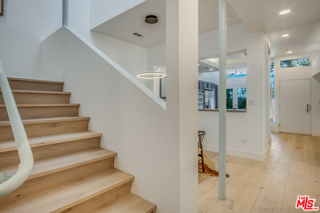 Santa Monica ocean living at it's best! This iconic Art Deco home was designed by well-known architect William D. Brantley and is located a few blocks from Santa Monica beaches, restaurants, shops, and all the fun amenities that make the West Side so amazing . The Art Deco design is truly beautiful, featuring skylights, vaulted ceilings, curved walls, and an abundance of natural light throughout. The home was recently update with modern wide plank hardwood floors, interior paint, and modern lighting. The home features a well-appointed kitchen with modern appliances, custom cabinetry, stone countertops, and with direct access to a large private outdoor patio with luscious modern landscaping. The main floor features an open concept design with French doors, a fireplace, large windows, high ceilings, and an office/bedroom with a private outdoor patio. The second story features two large bedrooms with on suite baths. The primary bedroom features a fireplace, jacuzzi style tub, and a large walk-in closet. The third story deck is perfect for outdoor living with ocean & city views. The home features a private 2-car garage, with ample storage.