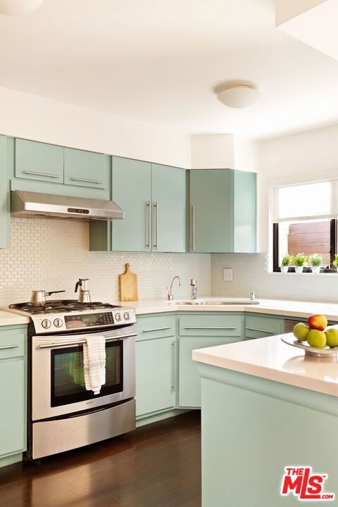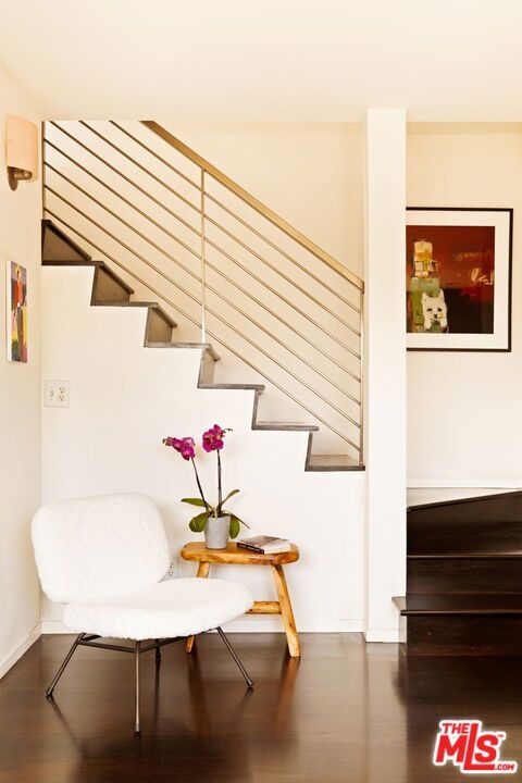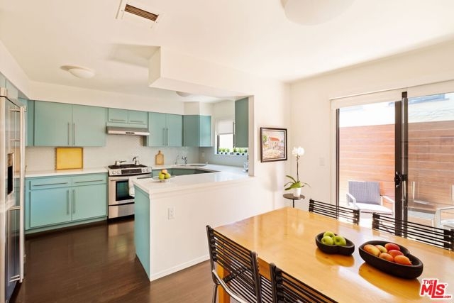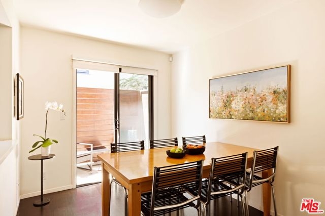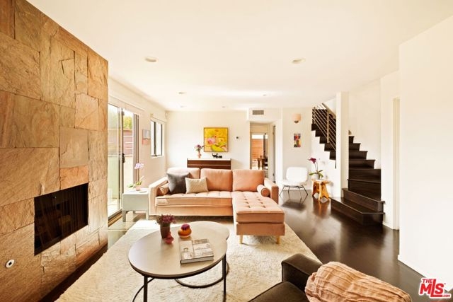 This bright and inviting walk-up townhouse lives like a private home, with no neighbors above or below, just one shared wall, and its own private two-car garage. A direct-entry porch opens to a sun-filled living room with a gas fireplace, space for dining, study, or sitting area, and access to a private patio. The great room flows into a large, fully updated kitchen with colorful cabinetry, stone countertops, and stainless steel appliances, plus an adjacent dining area and access to a second patio for outdoor lounging. An updated powder room completes the main level. Upstairs, two spacious bedrooms include a primary suite with remodeled bath and balcony, along with a second updated bath and a convenient laundry area. Additional features include three exposures (south, west, and east) that fill the home with natural light, dark hardwood floors, recessed lighting, crisp white walls, central heat and air, and excellent closet space throughout. The private garage below provides secure parking, extra storage, and direct unit entry. Move-in ready and located in an intimate five-unit building in Sunset Park, just blocks to Bob's Market, Will Rogers Elementary, neighborhood parks, gyms, and dining, and only eleven blocks to the beach. HOA dues are $675/month and include earthquake insurance, water, sewer, and trash. A modern yet warm retreat, thoughtfully designed to maximize space, comfort, and style.