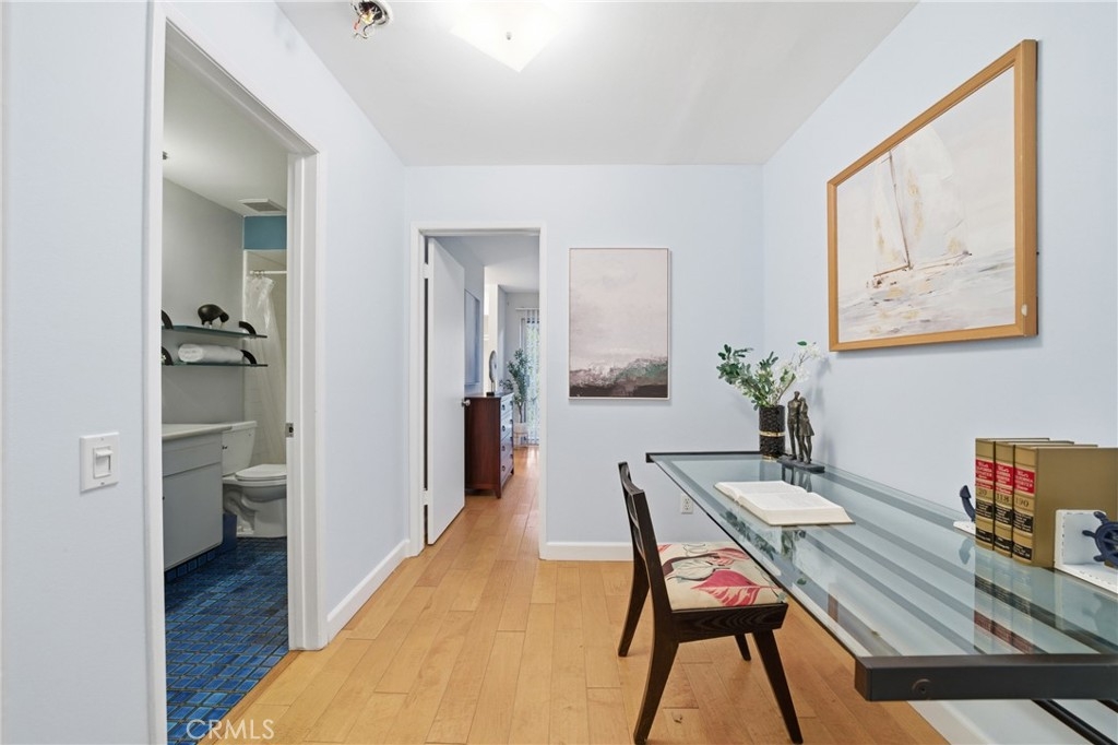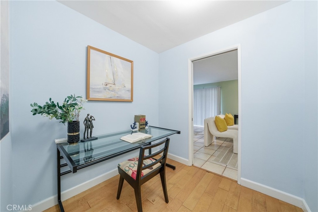 Prime Location! Just steps away from the iconic Santa Monica Beach, this home offers the vibrant rhythm and lifestyle of coastal living right at your doorstep. Nestled within a gated community, residents enjoy added privacy and security, along with access to a sparkling pool. The property features a bedroom with walk-in closet, a bathroom, a cozy den perfect for a home office or reading space, and an upgraded kitchen designed for both style and functionality. The interior boasts a combination of tile and wood flooring, providing both durability and elegance throughout. Additionally, the home includes its own dedicated parking space for convenience. A rare opportunity to experience beachside living in one of the most desirable locations!