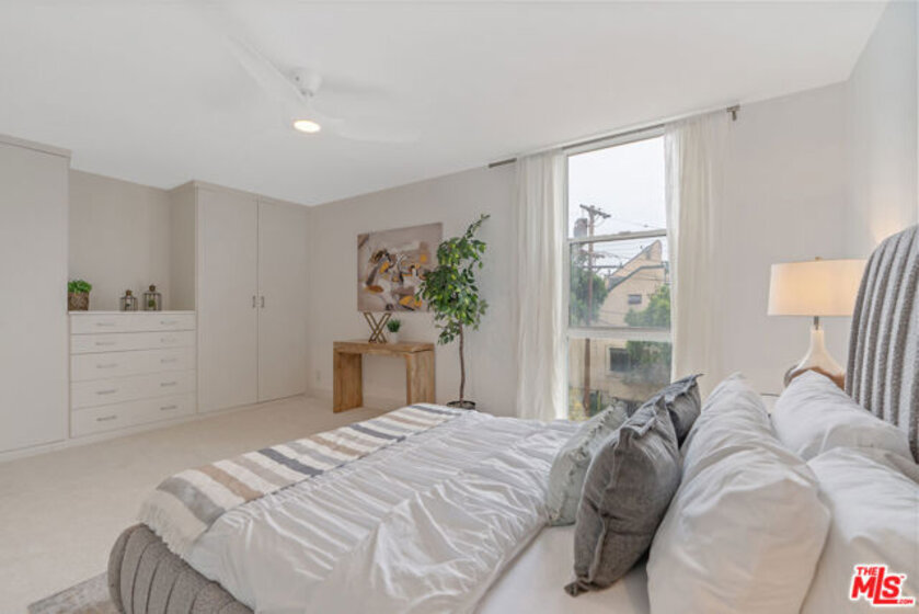 Immaculate, remodeled Ocean Park 1-bedroom with a custom office. The unit features an open living area, a spacious and light-filled bedroom with mountain vistas and custom closets, plus a separate, thoughtfully designed office by California Closets. The remodeled kitchen has marble countertops and full-size stainless-steel appliances. The updated bathroom offers a walk-in shower and a convenient linen closet. Ideally located just blocks from the beach, Main Street, and Rose Avenue - and directly across from Hotchkiss Park - this location truly can't be beat. The well-funded HOA includes a pool, gym, bike racks, solar panels to supplement community area power, and a community herb garden. Pets welcome per HOA Rules. Unit also comes with 1 assigned covered parking space in gated communal garage with additional assigned locked storage unit above parking.