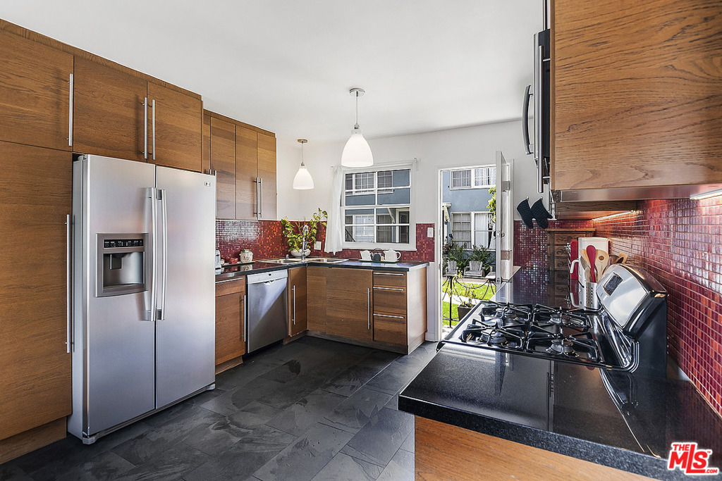 Fuel your creative soul and step back to a simpler time when you see this Santa Monica light-filled condo, brimming with charm and character, in a beautiful vintage courtyard building. From the moment you drive up, you'll notice the professionally-designed succulent landscaping and this home's charming direct-entry gated front yard. Inside, you'll find a comfortable, breezy layout with 2 bedrooms, remodeled 1 bathroom... and INSIDE laundry! You'll love the large open kitchen with its stainless steel appliances and plenty of countertop space and storage. Oversized picture windows perfectly frame the front yard and greenery out front and the peaceful courtyard in the back. 1-car parking and storage behind the building. Within much loved and top-rated Grant Elementary school district, a short stroll or bike ride away!