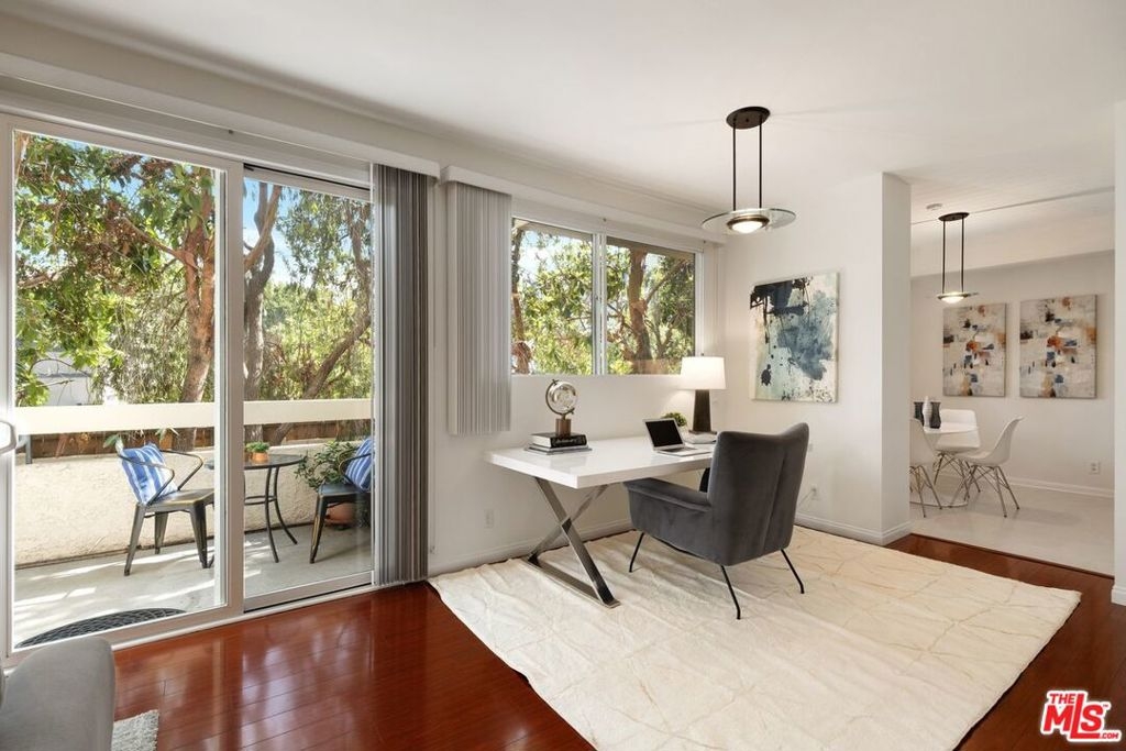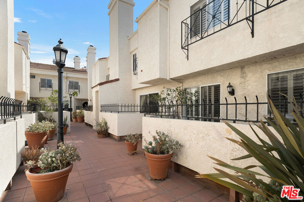 Light-filled 3 bedroom/2.5 bath end-unit townhouse in the coveted Grant Elementary school district. The open layout of the first-level features wood floors, double paned sliders, fireplace with mantle and an oversized balcony perfect for relaxing or entertaining. The eat-in kitchen includes a huge garden window, quartz countertops and pantry. A powder room with full laundry plus two closets complete the main level. The dramatic vaulted ceiling master upstairs has loads of closets and its own balcony perched among trees. The master bath has its own closet, two sinks and shower with sitting bench. The additional two bedrooms are perfect for guests or a work-from-home office. Two side by side parking spots in the gated garage plus a common bike room and dedicated, secure storage room make this a very special place. Located near Clover Park, great restaurants, TJs and the Farmers Market Santa Monica at its best!