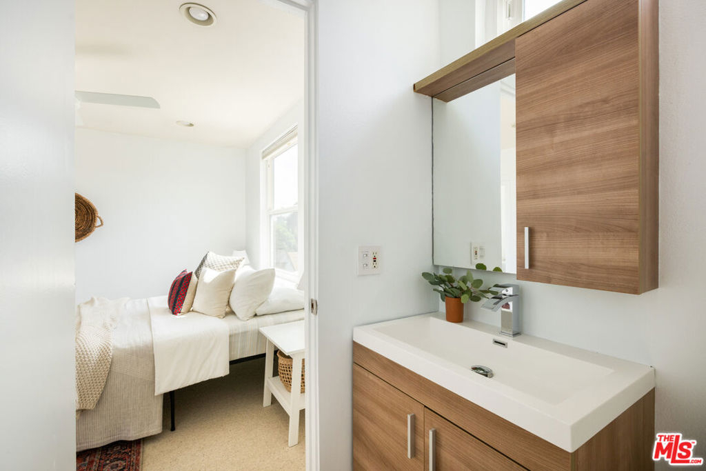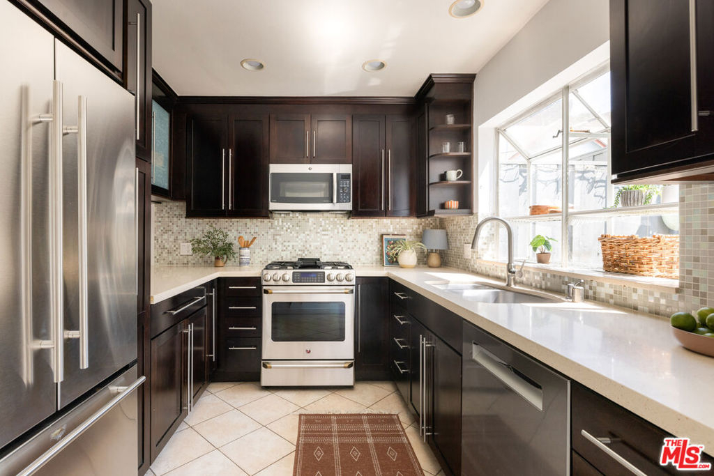 Nestled on a tree-lined street in a tranquil pocket of Sunset Park, this beautifully designed architectural townhome offers California living at its best. Step inside to find soaring ceilings and an abundance of windows and skylights that create a true sense of openness and light. The vibrant multi-level home offers 2 spacious bedrooms plus a versatile loft space that can function as a family room or 3rd bedroom, 2.5 baths, multiple private outdoor spaces, and a bonus room off the garage that would make the perfect home gym, office, or creative space. The bright and airy living and dining rooms flow seamlessly to the kitchen which features a wine fridge, stainless steel appliances, ample cabinet storage, and access to a lovely private patio, an ideal spot to enjoy morning coffee or weekend barbecues with family and friends. The primary bedroom is a serene retreat, offering tree-top views, a fireplace, walk-in closet, and an en-suite bathroom with a spa-like shower and double vanity. Enjoy ocean breezes and sunset views from the home's incredible private rooftop deck. The gated building provides intercom access, two side-by-side garage parking spots with extra storage, an EV charger, and direct access to the unit. Perfectly located in one of the Westside's most coveted neighborhoods, the property is just moments away from some of Santa Monica's best shops, restaurants, markets, and parks, and offers easy access to the beach, Venice, and freeways. Located in the desirable Grant Elementary School district. A sanctuary in the heart of the city, this special property is not to be missed.