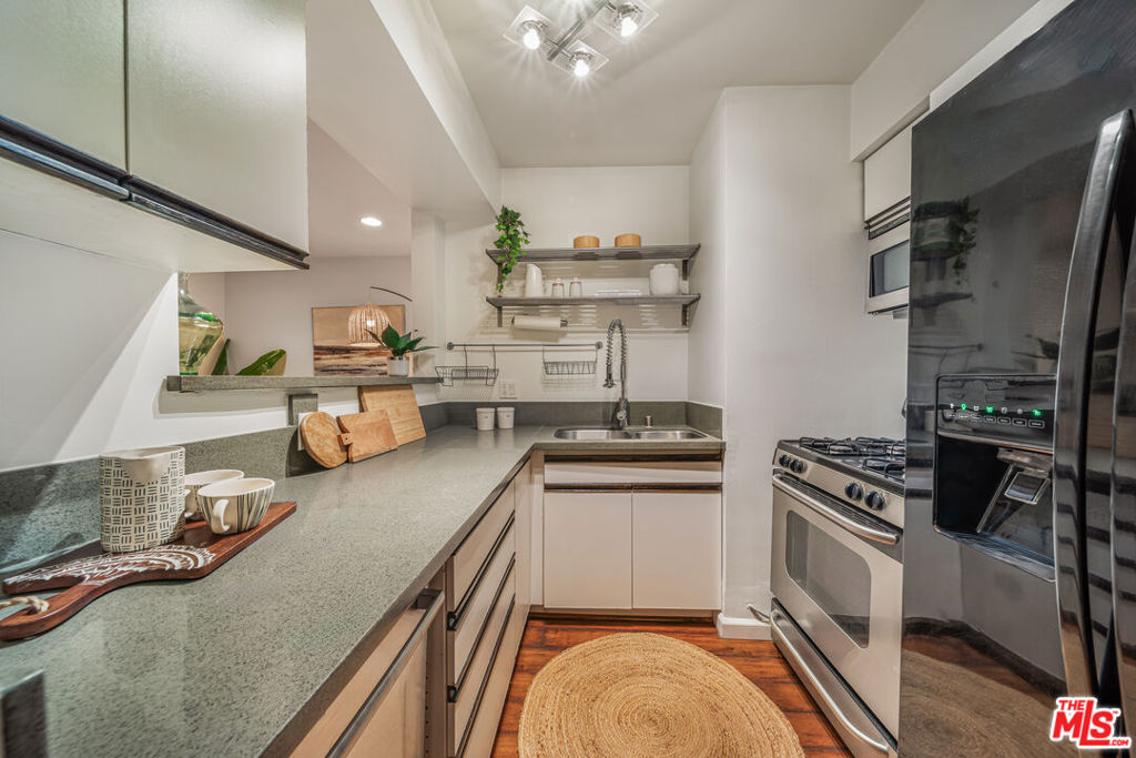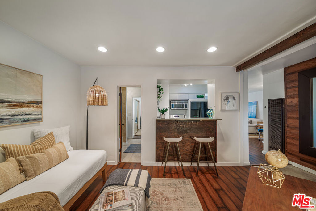 Coastal living at its best in prime Santa Monica location. Bright, open and thoughtfully remodeled 1 bedroom / 1 bath condominium four blocks from the ocean, offering the perfect balance of comfort and function. Large living room space includes a separate office / 2nd living room that can transform into a private guest bedroom. Peekaboo ocean view. Top floor, corner unit with only one shared wall. Covered, private storage space. Pet-friendly. On-site laundry facilities. Two blocks from the center of action on Main Street including restaurants, bars, shops, Sunday farmer's market, fitness studios and dog park. Minutes from the Santa Monica Pier, Downtown Santa Monica, 3rd Street Promenade and Venice. Ultra-easy access to the 10 Freeway and the Light Rail.
