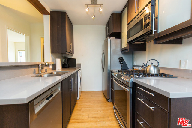 This is what you have been waiting for! Prime Santa Monica, top floor, fully renovated 1Br/1Ba condo w/ ocean views. Unit is seconds from Main Street, Rose Ave, Abbot Kinney & the Beach! The living room has beautiful sliding doors that open onto your private balcony allowing plenty of light & fresh ocean breeze into the unit. The open kitchen has been fully renovated w/ quartz countertops, stainless steel appliances & custom walnut wood trim. Kitchen has lots of cabinet space for storage & opens to the dining area, which is great for entertaining. Bathroom was fully remodeled w/ a custom walnut vanity, custom shower enclosure w/ designer tiles & accents. The spacious master suit has plenty of room to use as a bedroom & home office, complete w/ walk-in closet. Unit has lots of storage, new floors, in-unit washer & extra storage above parking. This unit allows you to live in the heart of Ocean Park, Santa Monica & truly experience the beach lifestyle! Come take a look before it's gone!
