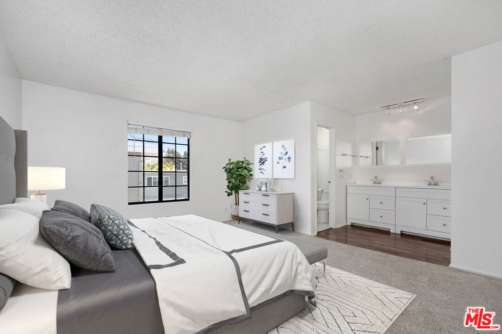 CHARMING TWO-STORY TOWNHOUSE IN PRIME SANTA MONICA. Nestled on a quiet, tree-lined street in one of Santa Monica's most desirable neighborhoods, this beautifully maintained two-story townhouse offers the perfect blend of comfort, space, and coastal charm just minutes from world-famous beaches, top dining, shopping, and entertainment. The spacious main level features an inviting living room with a cozy fireplace and private balcony, a thoughtfully designed kitchen with ample cabinetry, generous counter space, and a convenient pass-through bar, plus a sunny dining area that opens to a small enclosed patio ideal for indoor-outdoor living. A powder room and large hallway closet with custom built-ins add functionality. Upstairs, the light-filled primary suite boasts a walk-in closet, dual vanity, and private bath. The second bedroom includes its own walk-in and mirrored closets, with a separate full guest bathroom nearby. A tucked-away laundry area with decorative folding doors and multiple skylights throughout completes the home's bright, airy feel. Set within a contemporary, landscaped complex, this home is moments from Whole Foods, Trader Joe's, schools, public transit, and the Water Garden Office Park. A rare opportunity to enjoy everyday convenience and timeless Santa Monica living.
