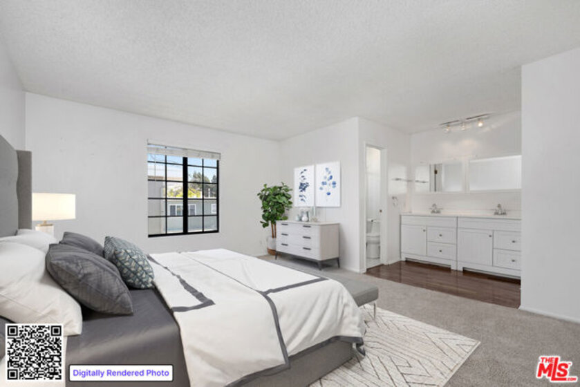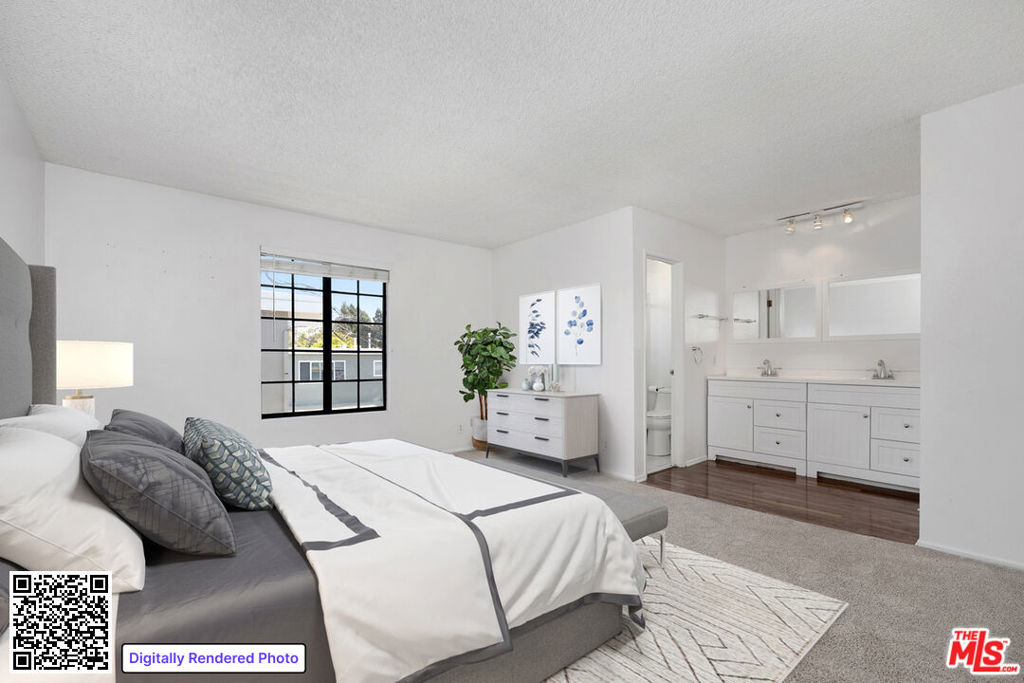 PRIME SANTA MONICA TWO-STORY TOWNHOUSE: Freshly painted interior just days ago, and nestled on a quiet, tree-lined street in one of Santa Monica's most desirable neighborhoods, this two-story townhouse offers the perfect blend of comfort, space, and coastal charm just minutes from world-famous beaches, top dining, shopping, and entertainment! The spacious main level features a living room with a fireplace and a private balcony, a thoughtfully designed kitchen with ample cabinetry and counter space, a convenient pass-through bar, and a sunny dining area that opens onto a small enclosed outdoor front patio. A powder room and a large hallway closet with custom-built-ins add functionality. Upstairs, the primary suite boasts a walk-in closet, dual vanity, and private bath. The second bedroom includes its own walk-in and mirrored closets, with a separate full guest bathroom nearby. A tucked-away laundry area with folding doors and multiple skylights throughout completes the home's bright, airy feel. Set within a contemporary complex, this home is moments from Whole Foods, Trader Joe's, schools, public transit, and the Water Garden Office Park. A rare opportunity to enjoy everyday convenience and timeless Santa Monica living.