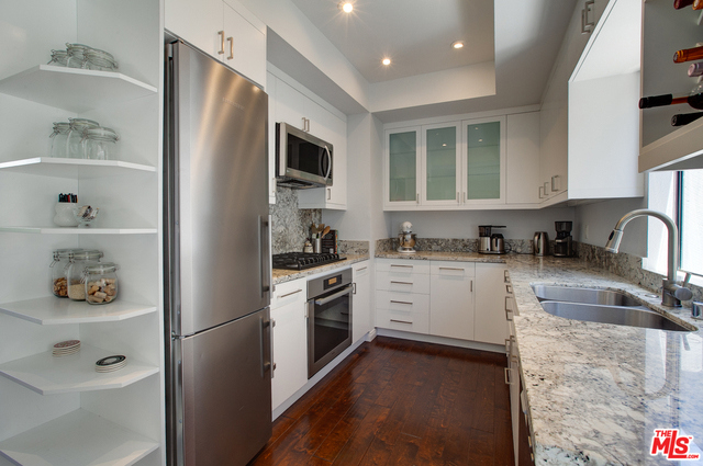 This stunning 2-bedroom, 1.5-bath townhouse is located in the highly-desirable Ocean Park area of Santa Monica, a short distance from the beach & the shops & restaurants of Main St. Enter the front door, or though a private access, double garage, to a bright, completely updated living room with an adjacent powder room. The remodeled kitchen, with gray granite counters and premium stainless steel appliances, opens to a sun-filled dining area with a spacious patio/balcony just outside. Walk up polished hardwood stairs to a beautiful full bath, a master bedroom with vaulted ceiling, and a second bedroom with access to a newly updated loft which can serve as a third bedroom or office or both.