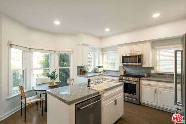 Coastal charm meets modern comfort in Ocean Park - this beautifully updated Victorian-style townhouse is just blocks from the Pacific Ocean! Spread across three spacious levels, the home features 3 bedrooms, 3 baths, and wonderful indoor/outdoor living, including a sun-filled rooftop deck with serene westward views toward the ocean. On the lower level, two bright and airy bedrooms with bay windows, walk-in closets, guest bathroom and enclosed laundry area create a private retreat. The primary suite opens to a secluded (and dog-friendly) private patio and boasts a beautifully renovated ensuite bath with heated floors, fireplace, motion-sensor lighting, high-end fixtures and LED mirror. The middle level is the heart of the home, where a chef's kitchen with a central island flows seamlessly into the open living and dining space. Natural light streams in through large windows, while a cozy fireplace and a private patio invite ocean breezes and effortless entertaining. Upstairs, a versatile third bedroom with fireplace, full bath, and French doors opens to a sun-drenched deck which faces west - ideal for a home office, gym, or simply a peaceful escape to capture sunsets and ocean breezes. Smart-home features include Alexa-controlled fireplace in primary bedroom, remote-activated locks, Ring security, and a digital thermostat. Additional amenities include two side-by-side underground parking spaces, security gates, extra storage, and an encased outdoor TV setup for year-round enjoyment. Part of an intimate three-unit community, this residence lives like a private home with minimal shared upkeep and one of the lowest HOA dues in the area. Just blocks from the Pacific, Abbot Kinney Blvd., Rose Ave., surrounded by Santa Monica's best cafes, restaurants, parks, and beaches, and within the highly desirable Santa Monica school district, this is a rare coastal gem that combines modern luxury, convenience, and a true sense of home.