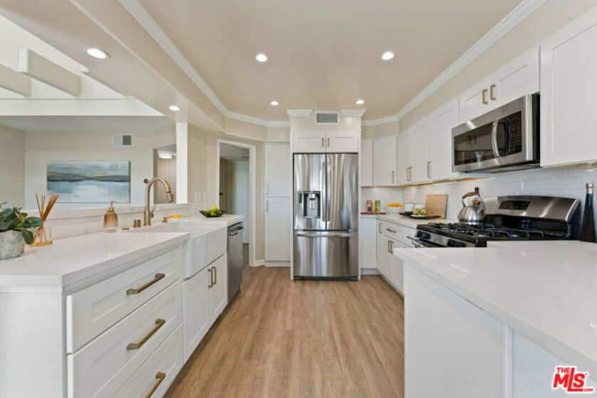 This beautifully designed townhouse-style penthouse is a rare offering in an A+ Santa Monica location, within a top-rated school district. The HOA just completed a major 3.4 million dollar building-wide renovation project that includes new roofing, gutters and downspouts, waterproofing and decking systems, upgraded drainage, podium deck improvements, fresh stucco and paint, offering exceptional long-term value and peace of mind to the next owner. Flooded with natural light, this serene and spacious south-facing home features an open, airy layout and an expansive private rooftop deck with panoramic city and treetop views. Indoor-outdoor living is seamless, with dramatic high ceilings, a white brick fireplace, and large sliding glass doors that open to a sunny outdoor seating area off the living room. The fully renovated designer kitchen includes high-end finishes and a breakfast bar, perfect for both entertaining and everyday living. Recent upgrades throughout the unit include new dual-pane windows (2021), a brand new AC unit (2024), new flooring in the loft (2020), and custom closet systems installed (2022). The layout offers a luxurious primary suite with a spa-like en-suite bath and an oversized walk-in closet, a spacious second bedroom with its own full bath, and a large loft that functions perfectly as a third bedroom, home office, or creative space. Additional highlights include in-unit washer/dryer, generous storage, and stylish finishes throughout. This home is part of a well-maintained, secure building featuring resort-style amenities including a pool and spa, gated side-by-side parking, a large storage room, elevator access, earthquake insurance, and strong financial reserves. All of this is just minutes from the best of Santa Monica, Mar Vista, and Brentwood close to premier restaurants, shops, parks, and markets. This move-in ready penthouse blends luxury, location, and lifestyle truly a must-see dream home.