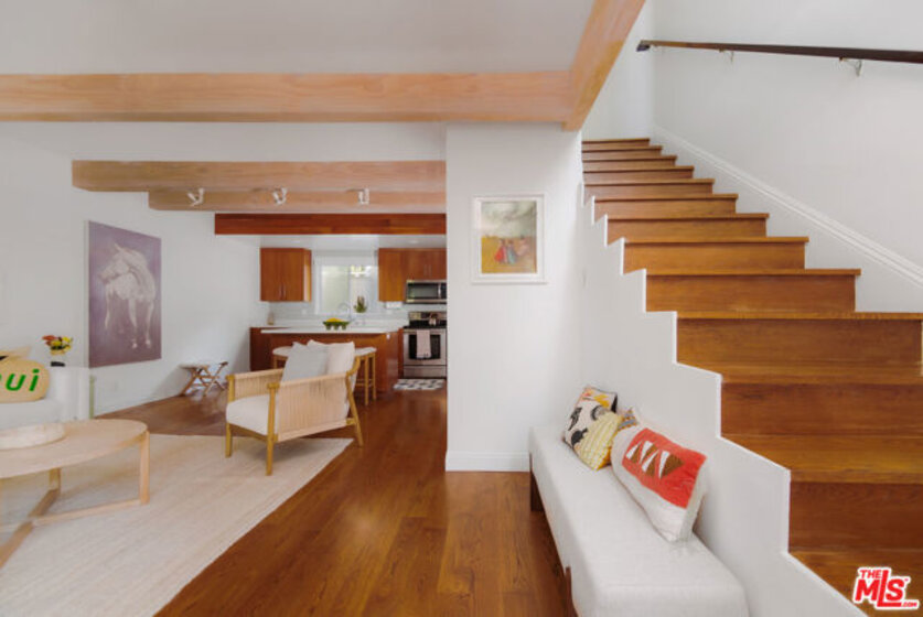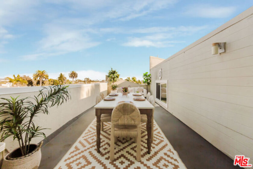 Spacious Townhouse in Ocean Park just 5 blocks from the beach! Nestled in the heart of Silicon Beach, this rare 2-bedroom, 2-bathroom townhome offers the perfect blend of coastal charm and modern comfort. Step inside to an airy open floor plan with soaring beam ceilings, hardwood floors, and a cozy gas fireplace, all bathed in natural light from expansive windows. The beautifully updated kitchen features sleek cabinetry, stainless steel appliances, and a generous island - perfect for morning coffee, casual meals, or hosting friends. A stylish guest bath completes the main level. Upstairs, two spacious bedrooms feature dramatic 12-foot vaulted ceilings, abundant closet space, and a remodeled bath accented with timeless white subway tile. Head up to the private rooftop deck to soak in city and treetop views ideal for dining under the stars, lounging with a book, or enjoying those unforgettable Southern California sunsets. Added conveniences include an in-unit washer/dryer and a two-car semi-private garage. Just blocks from the sand and minutes from the vibrant shops, cafes, and restaurants along Main Street, Abbot Kinney, and Rose Avenue, this home places you at the center of Santa Monica and Venice's most sought-after lifestyle. A rare Ocean Park gem not to be missed!