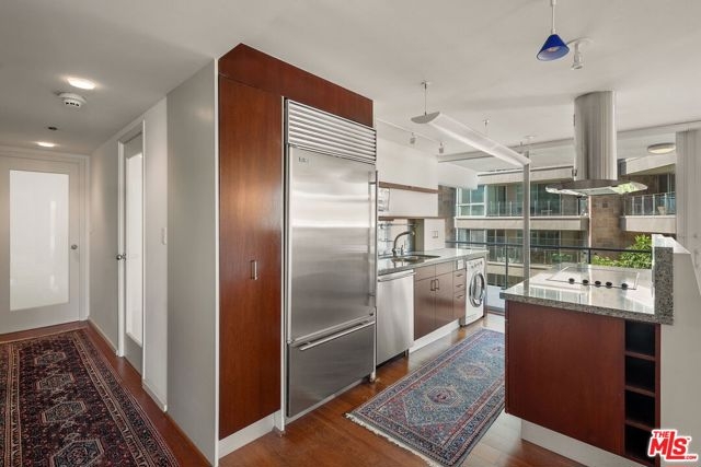 OceanAire, one of Ocean Avenue's most recognizable mid century buildings by A. Quincy Jones, sets the stage for this corner residence with views that sweep from the mountains and city lights to the ocean and Palisades park. Now vacant and ready for its next chapter, the home features floor to ceiling windows and a wraparound terrace that anchors the open kitchen, living and dining areas and keeps the views in constant focus. The well proportioned primary bedroom has generous closet space and an ensuite bath, complemented by a spacious second bedroom. It is an appealing canvas for a buyer who wants to update and personalize a home in a building that is consistently in demand. Residents enjoy a 24 hour doorman, gym and peaceful garden setting, with Montana Avenue, the Third Street Promenade and beaches all close by.