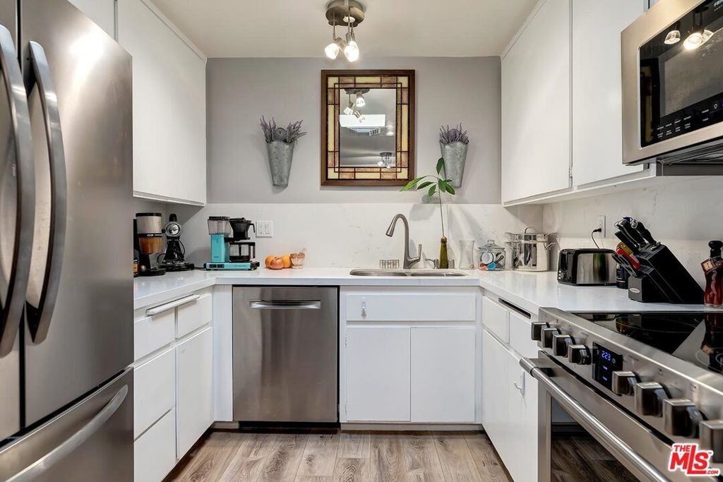 Easy to show, top floor one bedroom luxury condominium in a premium Montana Avenue condominium complex. Open floor plan, large living room with extended private patio seating area facing Palos Verdes. Master bedroom with plenty of closet space. Remodeled with wide-plank white oak style flooring, quartz composite counters, designer tile and stainless appliances. Laundry inside unit. Secure gated garage with large private parking space. Elevator located within building and HOA dues that include hot water and Earthquake insurance. Conveniently located near Montana Ave shopping and dining, 3rd Street Promenade, Palisades Park and Beach.