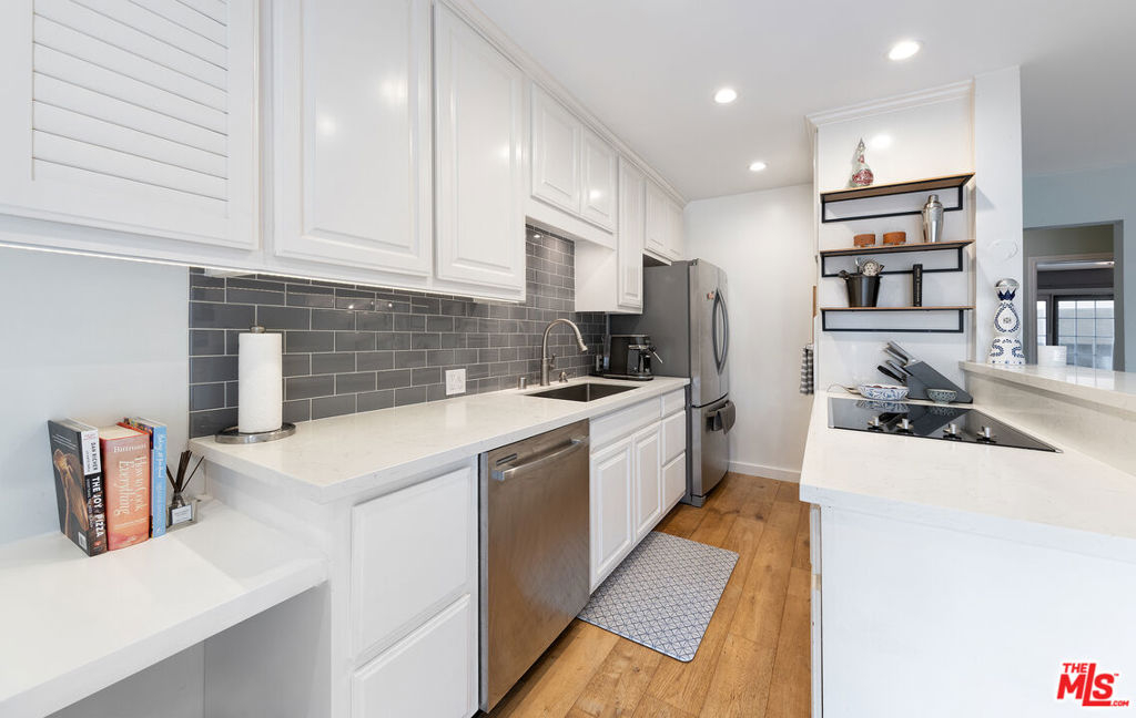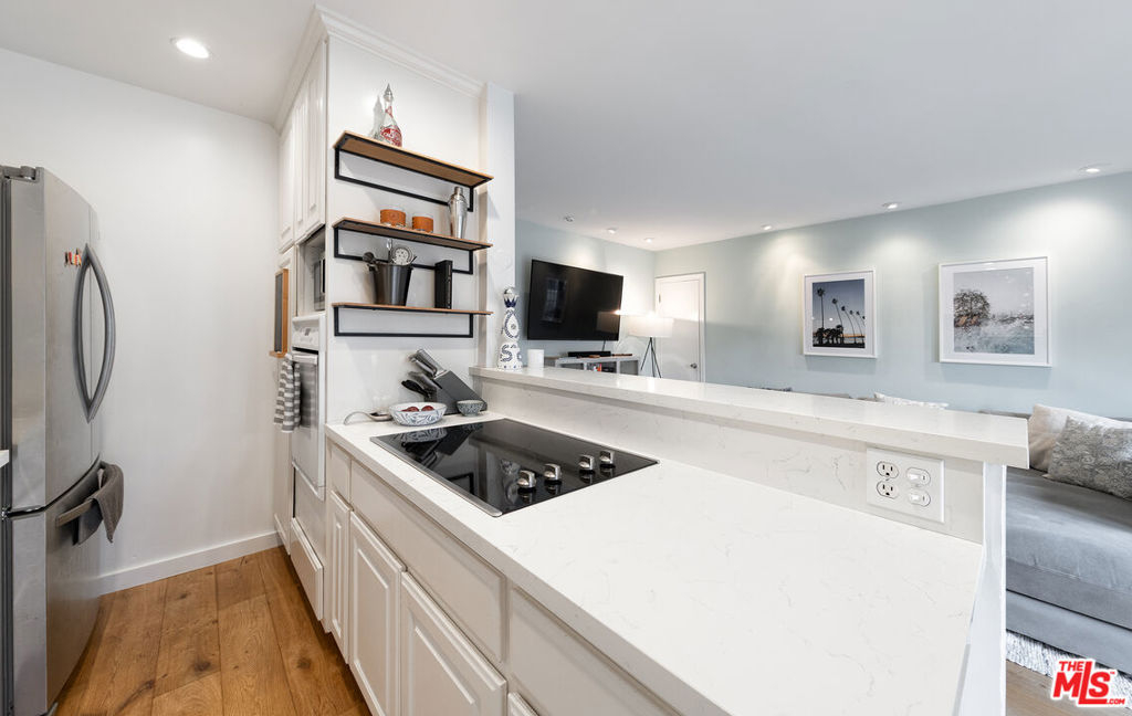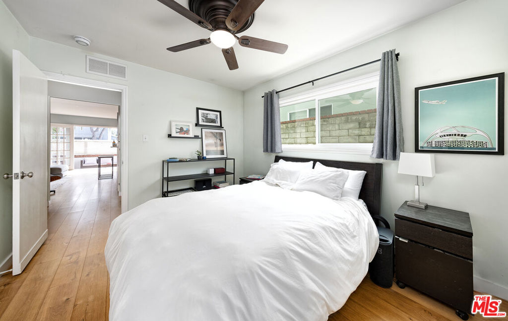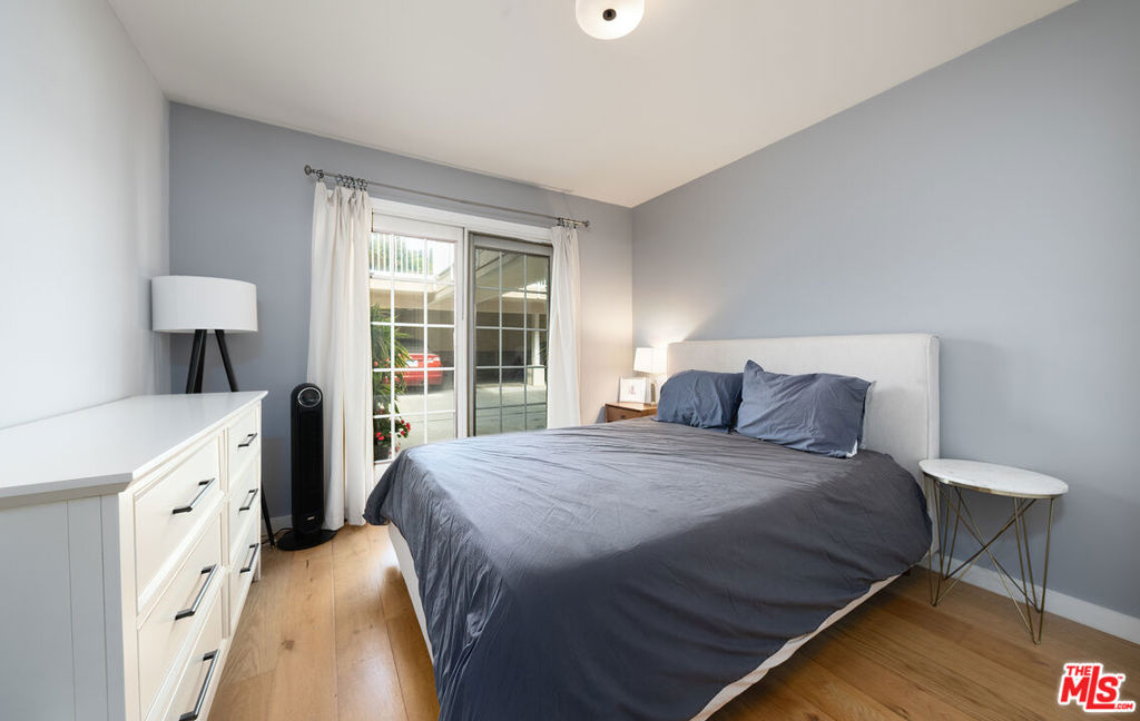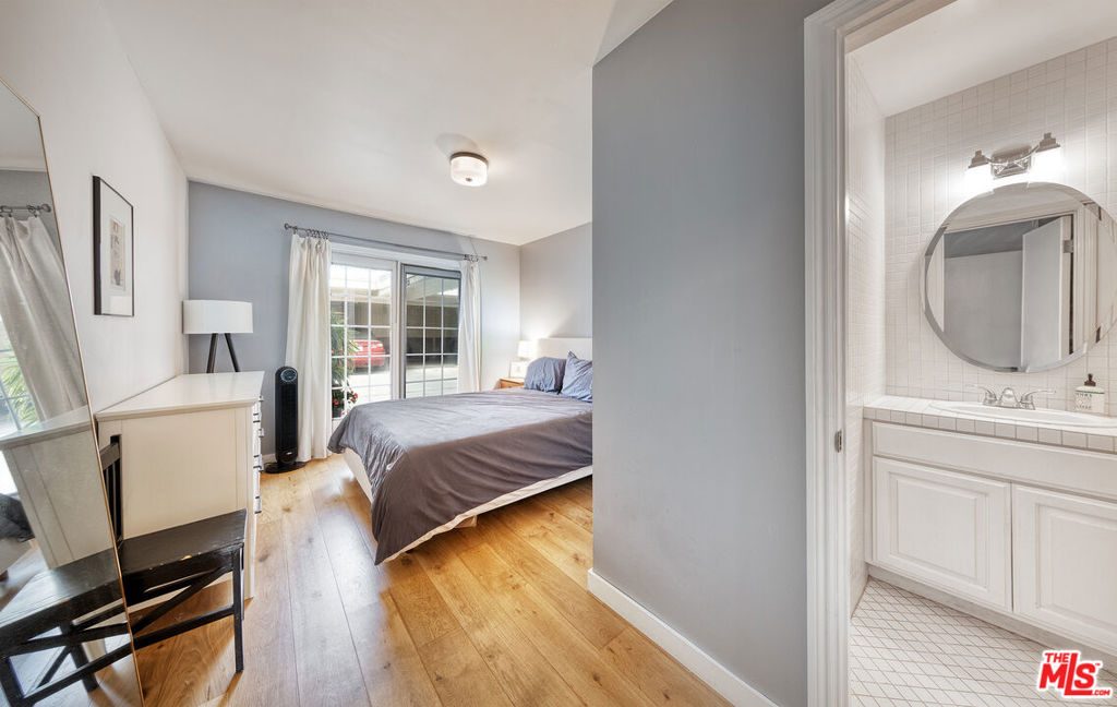 Experience indoor/outdoor living in Santa Monica's Ocean Park neighborhood at this tastefully designed, single level two bedroom condo. From the serene patio, where you can enjoy the benign Mediterranean climate year round, French doors lead to an open floor plan featuring an inviting, light-filled living room and a recently updated kitchen. To the rear you will find two bedrooms and two bathrooms along with in unit laundry. A second set of doors in one of the bedrooms lead you to the parking area and the association amenities of a heated pool, spa, paddle tennis court and an expansive mezzanine deck with community barbecue grills for entertaining or relaxing with a good read in the sun. The current owners installed real hardwood floors and an upgraded electrical panel and they remodeled the kitchen with quartz countertops; a tile backsplash; new sink, faucet and cabinet; canned lights; and a new dishwasher and cooktop. Other improvements were new windows in one of the bedrooms and one of the bathrooms. Easy parking for two cars via gated access is provided in one covered space with a storage locker and an assigned space just to the rear of the unit. Hot water is supplied by a solar-assisted heater on the roof of the complex. HOA dues provide high-speed internet and deluxe cable TV. Conveniently located near freeway access and the Metro Expo line, this condo is close to the shops and restaurants on Main Street, downtown Santa Monica and, of course, the beach and its many recreational options.Don't miss the opportunity to call this remarkable coastal sanctuary your home.