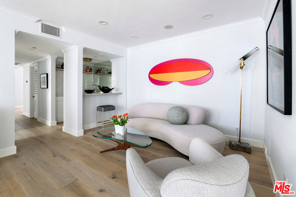 Prepare yourself for a spectacular experience in a designer perfect home in one of Ocean Avenue's most exclusive full-service buildings. Upon entering this sophisticated, impeccably remodeled serene retreat, you will be instantly impressed with the exquisite aesthetic throughout. This single level corner unit is located in the tranquil northeast portion of the floor with two sides of expansive windows and glass doors, bathed in natural light. There are beautiful views of mature trees from every vantage. Wide plank, pale wood floors complement an inviting, open floor plan, ideal for entertaining. Two bedrooms and two and a half baths plus den in 1,924 SF comprise this sensational home. The den, adjacent to the living and dining areas provides a feeling of an open, expansive, airy flow. A special, artistic powder room is located in the central hallway. The open, remodeled gourmet kitchen features top of the line appliances. There is a separate enclosed laundry room. The refined master bedroom with three closets has direct access to a balcony with peek-a-boo ocean views, indeed a sanctuary. The luxurious marble bathroom features new cabinets, counters and a frameless shower door. Enjoy socializing on two terraces with views of lush green foliage. This highly desirable building has a most impressive, spacious rooftop with pool, spa, sundeck and entertaining areas w/built in barbeques. Additional building amenities include a 24-hour concierge, on-site management, controlled access, two side by side parking spaces, guest parking, fitness facility and large banquet/conference room w/an adjacent catering kitchen. Located close to restaurants, shopping and Palisades Park, it is also across the street from the Montana stairs where there is a bridge to the beach. You must come see this property - come live this ideal Santa Monica lifestyle!
