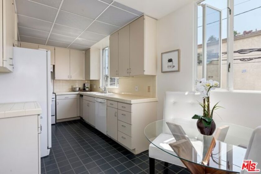 Exceptionally priced single-level condominium available today, North of Wilshire, with two bedrooms and two bathrooms, plus two outdoor spaces. Unit features high ceilings, a wood-burning fireplace, and engineered hardwood flooring. The living room features a wet bar and a balcony overlooking California Avenue. The bright kitchen offers a breakfast area, an in-unit washer-dryer, and a pantry for additional storage. The primary suite features a balcony, large windows, a walk-in closet, and a private bathroom. The building consists of only five units, with two units per floor. Parking is conveniently side-by-side, and extra storage is available. This property is ideally located near a variety of shops and restaurants along Wilshire Blvd, and is just a short stroll from Christine Reed Park and the Third Street Promenade.