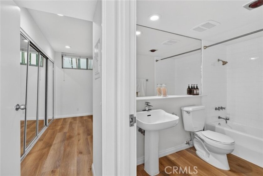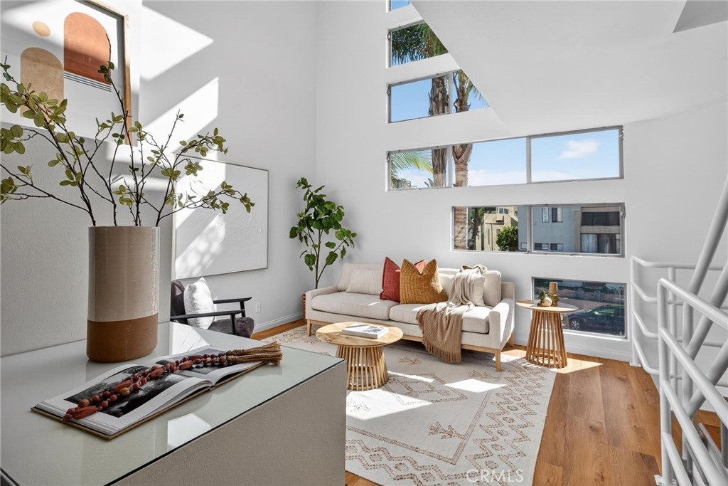 Step into this bright, sun-filled, architectural townhouse offering a 2-bedroom + loft layout designed for both comfort and style. The reverse floor plan places two bedrooms on the first level, sharing a full bathroom—perfect for privacy and separation from the main living spaces. Upstairs, the main living level is filled with natural light and anchored by dramatic windows that soar to the high ceiling, creating an open, airy atmosphere. This inviting space includes a cozy living room with fireplace, dining area, a well-appointed kitchen with Viking appliances, and an additional bathroom—ideal for everyday living and entertaining. The top floor features a versatile loft, offering the flexibility of a home office, guest space, or potential third bedroom. Step outside to the upper deck, an ideal spot for hosting friends or enjoying coastal evenings. Additional highlights include full-size side-by-side laundry, central A/C and heat, fresh paint, and two secure side-by-side parking spaces. Set within a well-maintained community, this home is just minutes from Montana Avenue, Main Street, and the Santa Monica beach, with easy access to world-class dining, shopping, parks, freeways, and public transportation. Whether you’re looking for a primary residence, a coastal retreat, or a smart investment, this Santa Monica condo delivers exceptional light, location, and livability.