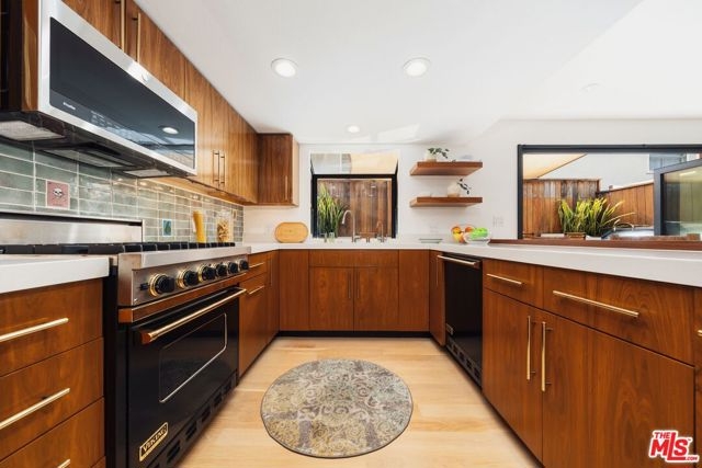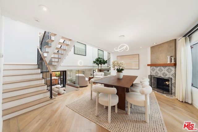 PRICED TO SELL! Steps off Montana Ave, this sleek contemporary-transitional home blends modern design with effortless Westside living. Step inside and you're greeted by soaring double-height ceilings, skylights that pour in natural light, and an open-concept layout that feels airy and inviting. The floating staircase, white oak floors, and loft-like vibe set the tone for a stylish yet comfortable space. The living and dining areas, anchored by a cozy working fireplace, flow seamlessly into the family room and chef's kitchen, creating the ultimate setup for entertaining. Accordion glass doors open wide to a private outdoor lounge with a built-in BBQ and bar seating, offering the perfect spot for dinners, weekend gatherings, or simply soaking up the SoCal sunshine. The kitchen itself is a design statement with custom walnut cabinetry, sleek stainless appliances, and a casual eat-in bar that makes cooking and conversation effortless. A powder room on the main level adds everyday convenience. Upstairs, the primary suite is a true retreat with its own balcony, oversized walk-in closet, and a spa-like bath featuring dual vanities, generous storage, and a frameless glass shower. A second upstairs bedroom offers its own en suite bathroom finished with the same high-end details found throughout the home. Additional upstairs space includes a loft area, perfect as a study nook, yoga corner, or reading lounge, which opens to a spacious outdoor patio ideal for your morning coffee ritual. The lower level brings even more versatility with a third bedroom, currently set up as a media room, that can easily be transformed into a guest suite, gym, or creative studio. Completing this offering is a private gated two-car garage with built-in cabinetry for extra storage, in-unit stacked laundry on the main level, and secure gated access to the upper level. Of course, the lifestyle seals the deal, with Santa Monica Beach just minutes away and Montana Avenue's best cafes, shops, and fitness studios only steps from your front door. This home achieves the perfect balance of modern design, functionality, and coastal cool.